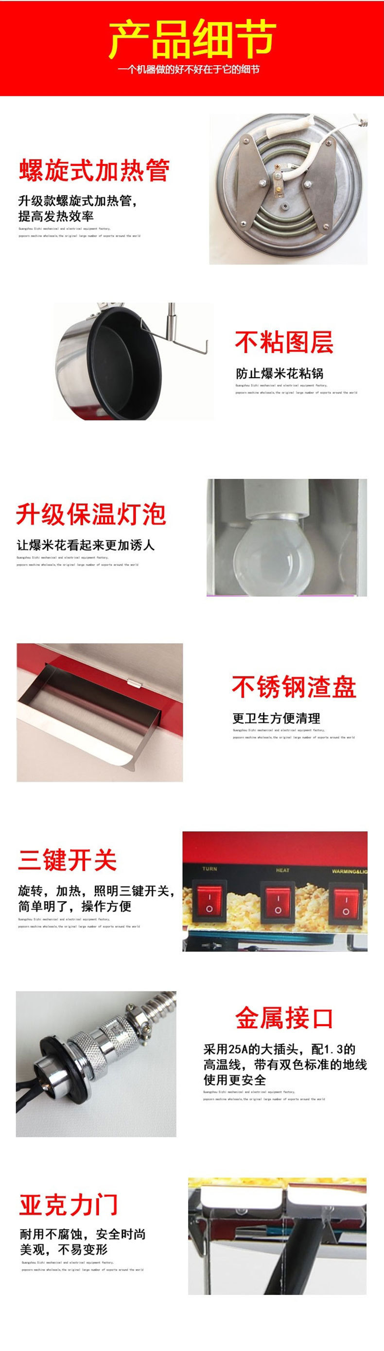 Fuchens 팝콘 기계 상업용 지붕 시네마 전기 가열 스낵 장비 이동식 팝콘 기계
