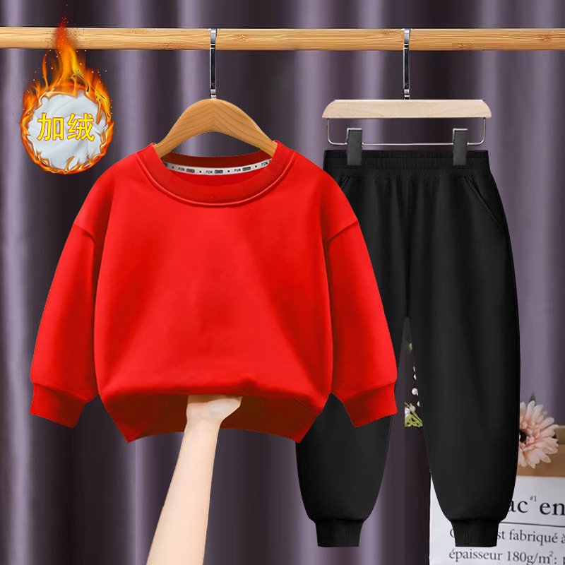 2023 새 소년 소녀 '세트 봄과 가을 투피스 세트 어린이 기모 캐주얼 스웨터 겨울 순수