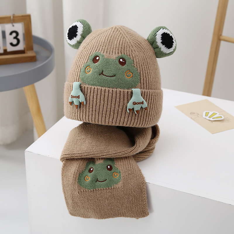• 개구리 울 세트-카키 + 추천 2-8 세/모자 둘레 48-54cm + 프리 사이즈
