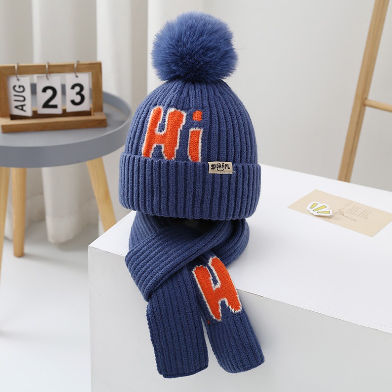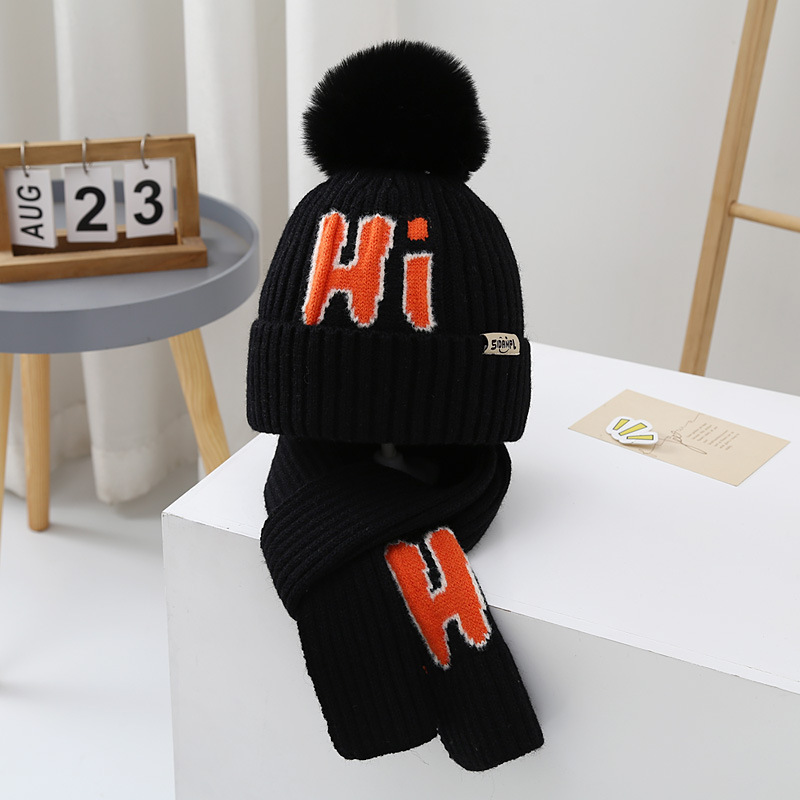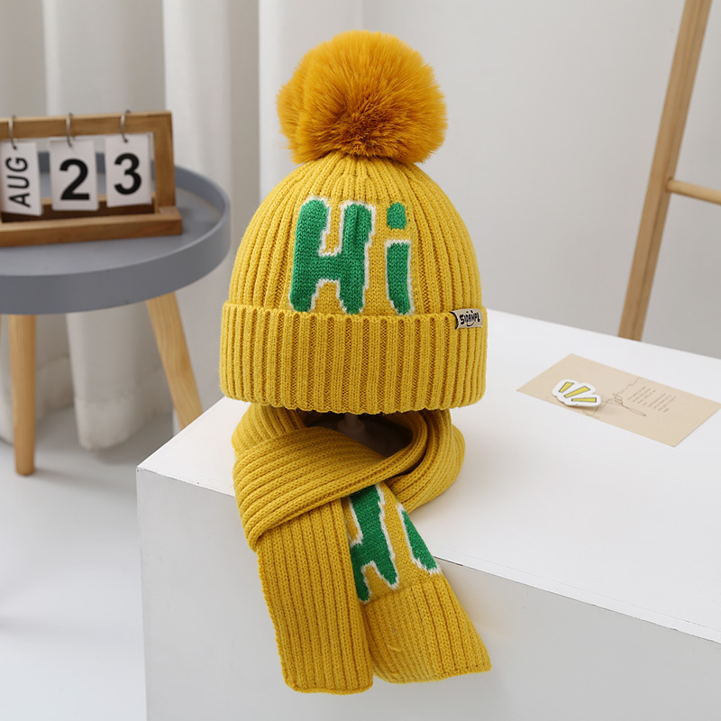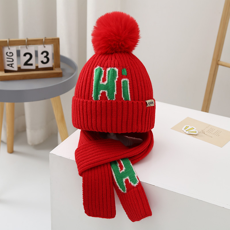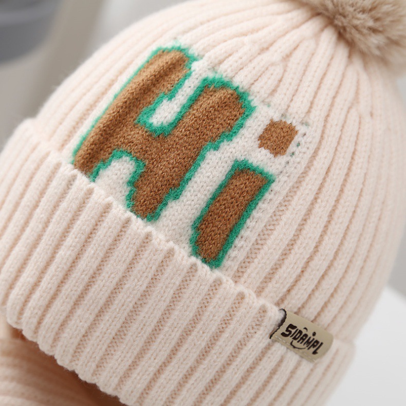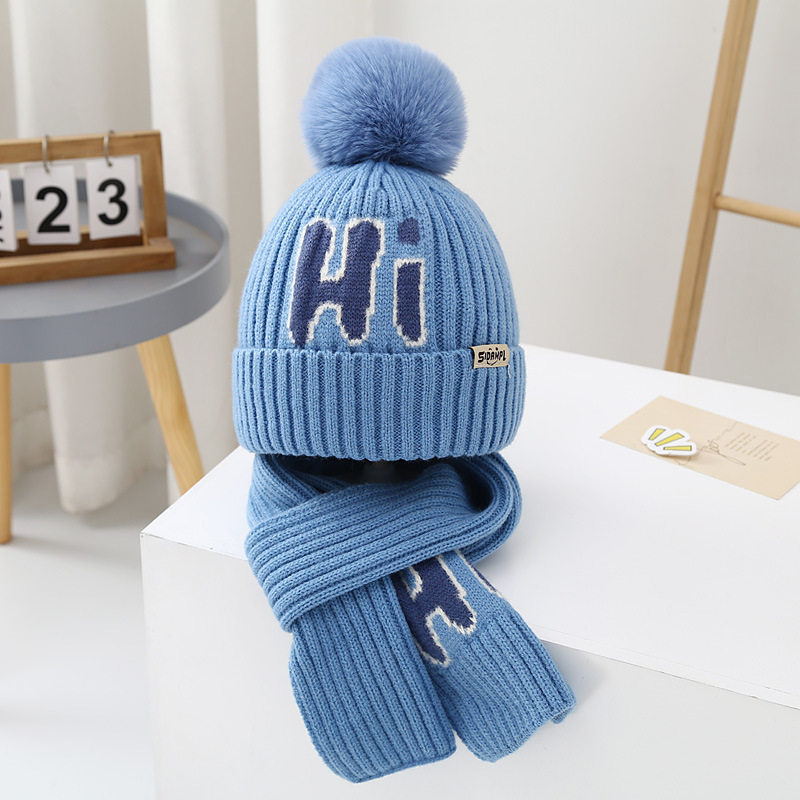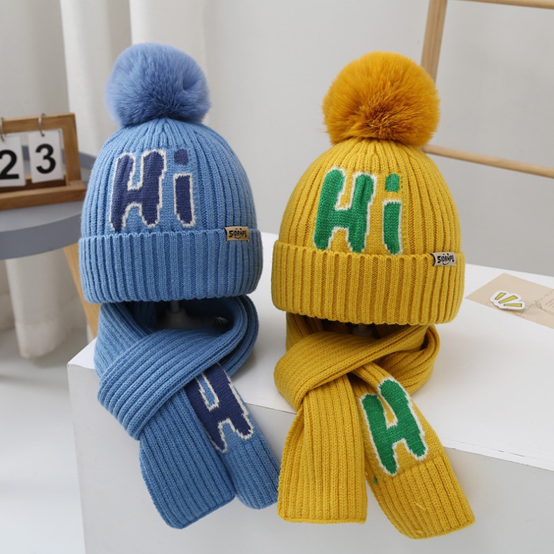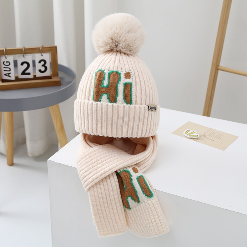 가을과 겨울 어린이 모자 소년 곰 울 모자 소녀 니트 면 따뜻한 중간 및 큰 어린이 모자 스카프 세트