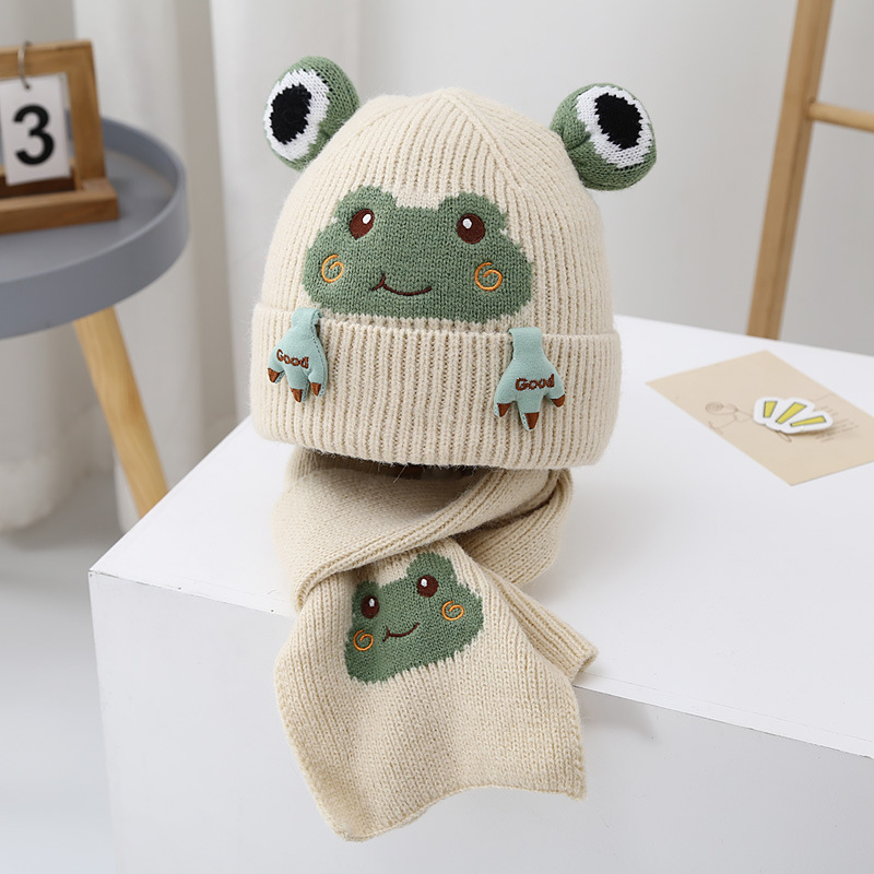 • 개구리 울 세트-베이지 + 추천 2-8 세/모자 둘레 48-54cm + 프리 사이즈