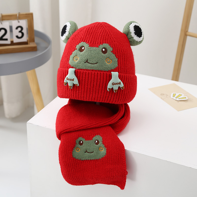 • 개구리 울 세트-레드 + 추천 2-8 세/캡 둘레 48-54cm + 프리 사이즈