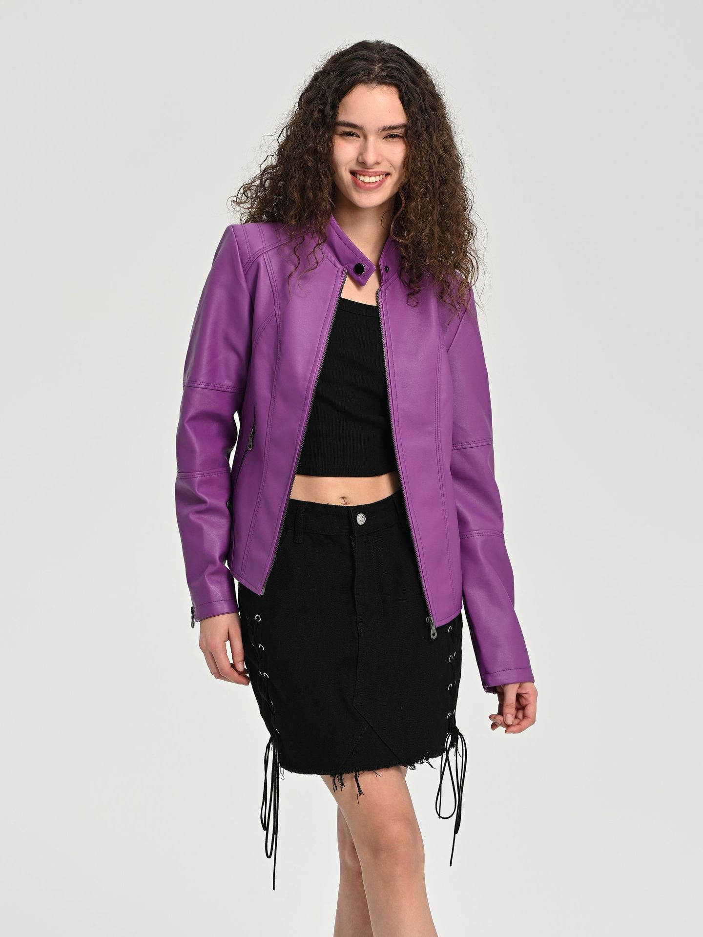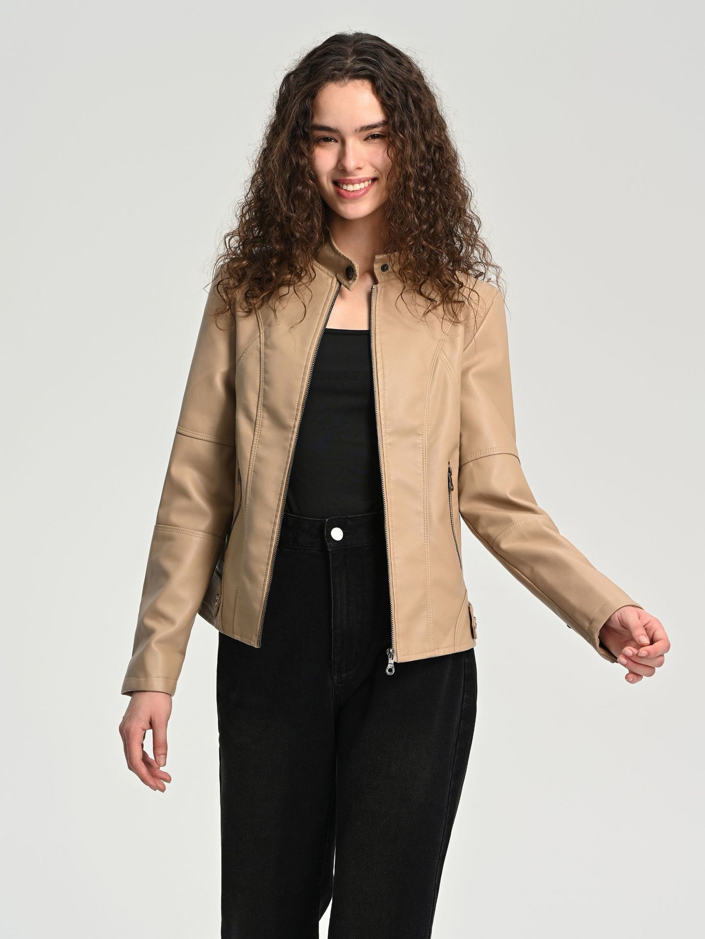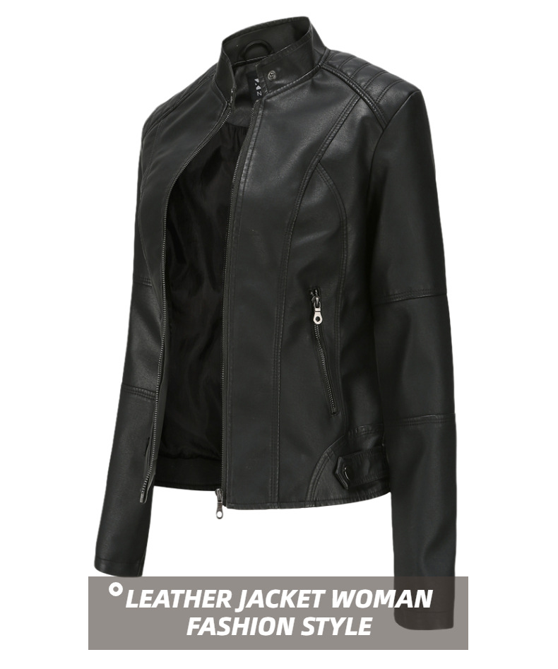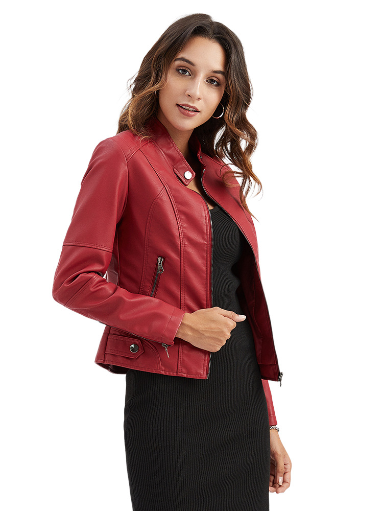 유럽형 스탠드 칼라 가죽 재킷 여성용 신상 봄 가을 가죽 자켓 여성용 슬림핏 얇은 소형 재킷 여성용 바이커 자켓
