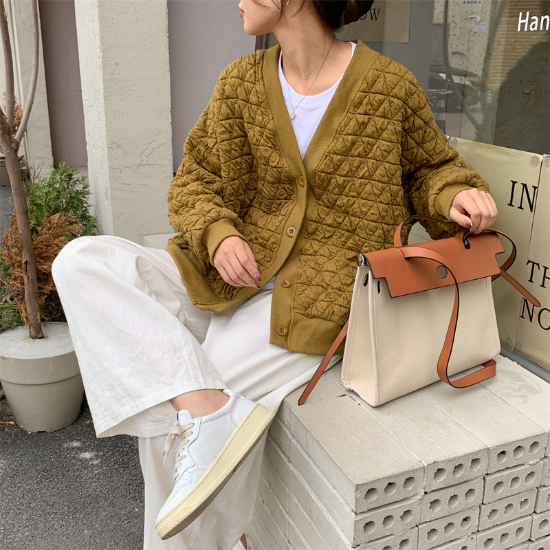 미국 복고풍 V-넥 편평한 야구 세트 코트 여자의 2023 가을과 겨울 느슨한 게으른 스타일 재킷 카디건 탑