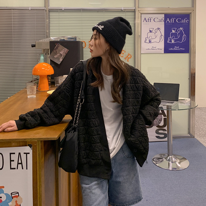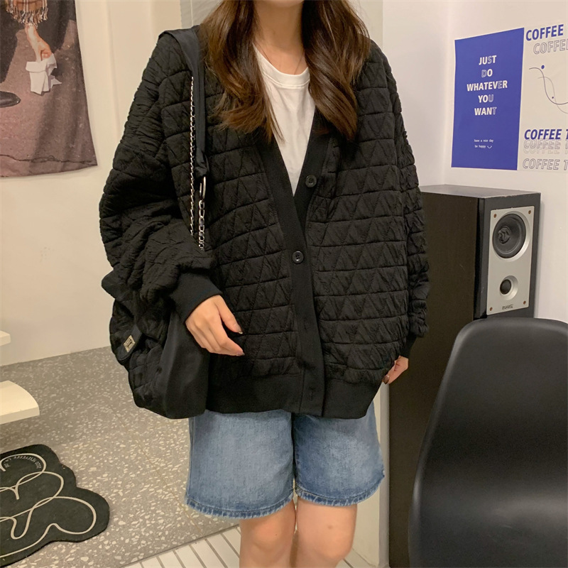 미국 복고풍 V-넥 편평한 야구 세트 코트 여자의 2023 가을과 겨울 느슨한 게으른 스타일 재킷 카디건 탑스토어 가기