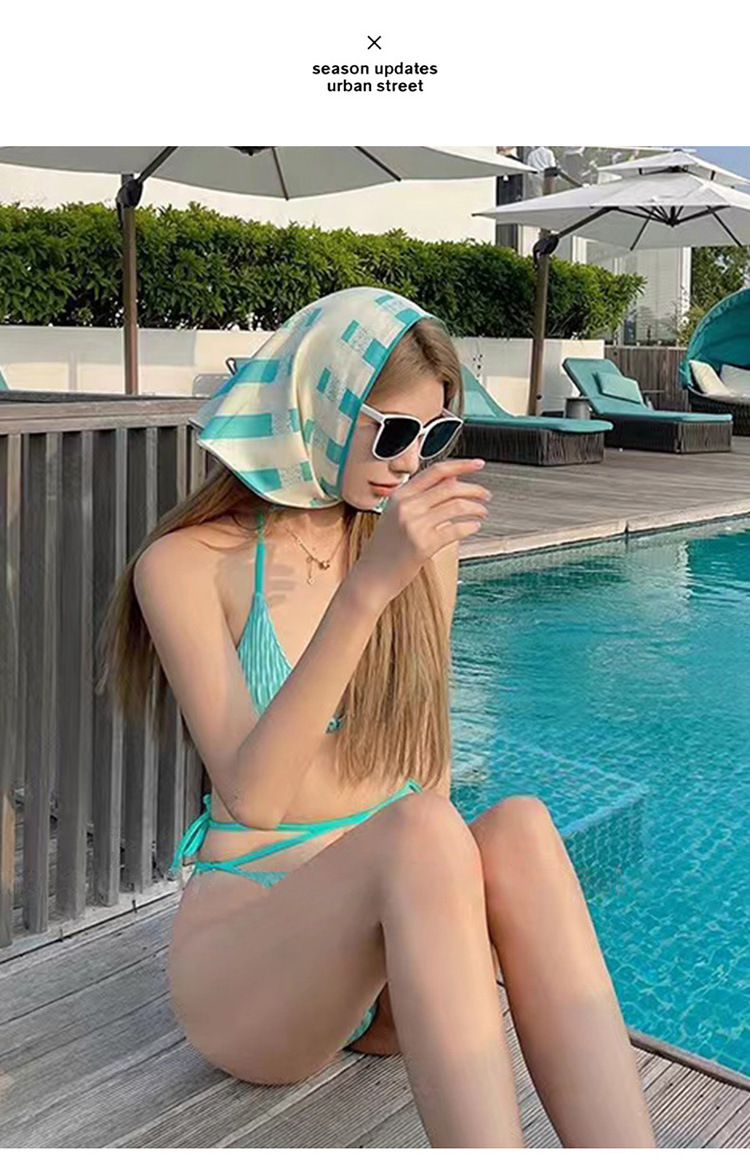 교수형 목 비키니 핫 걸 섹시한 3 점 작은 가슴 푸시 업 엉덩이 녹색 분할 수영복 여성용 온천 수영복스토어 가기