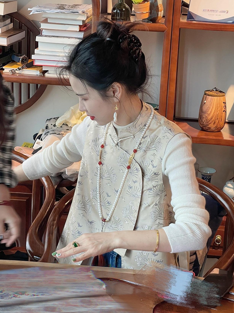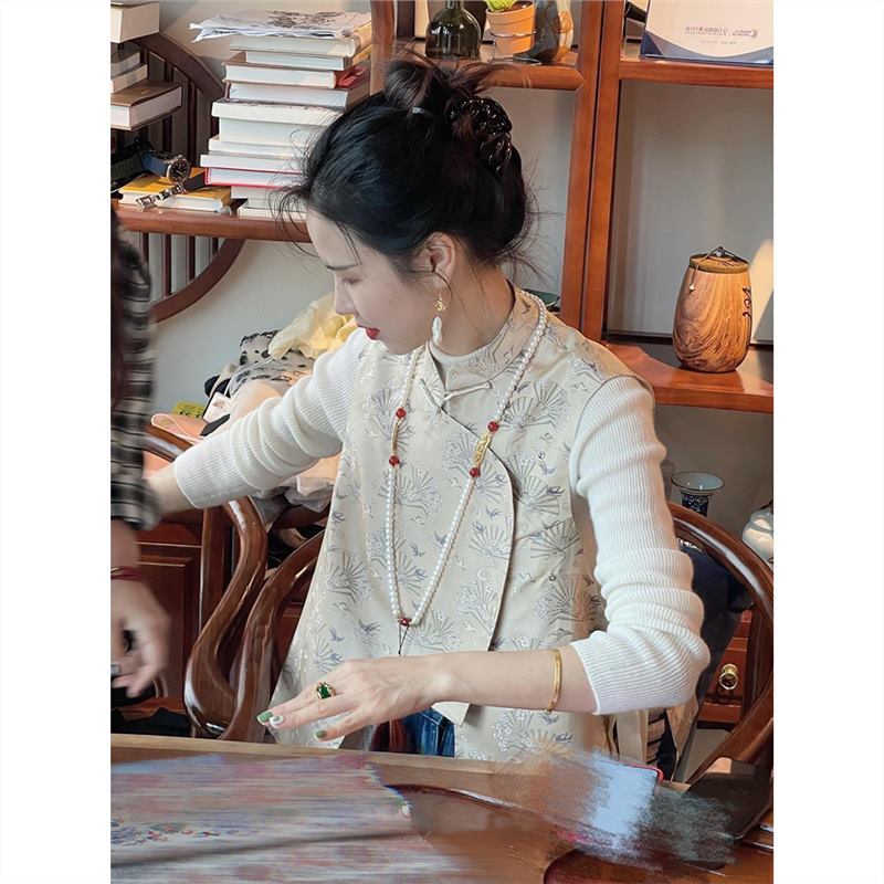 YT248915 가을 겨울 올해의 인기 기질 새로운 중국 스타일 내셔널 스타일 버클 탑 조끼 투피스 여성 의류스토어 가기