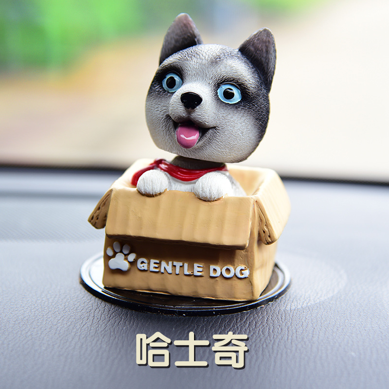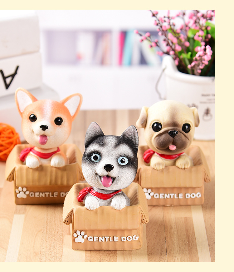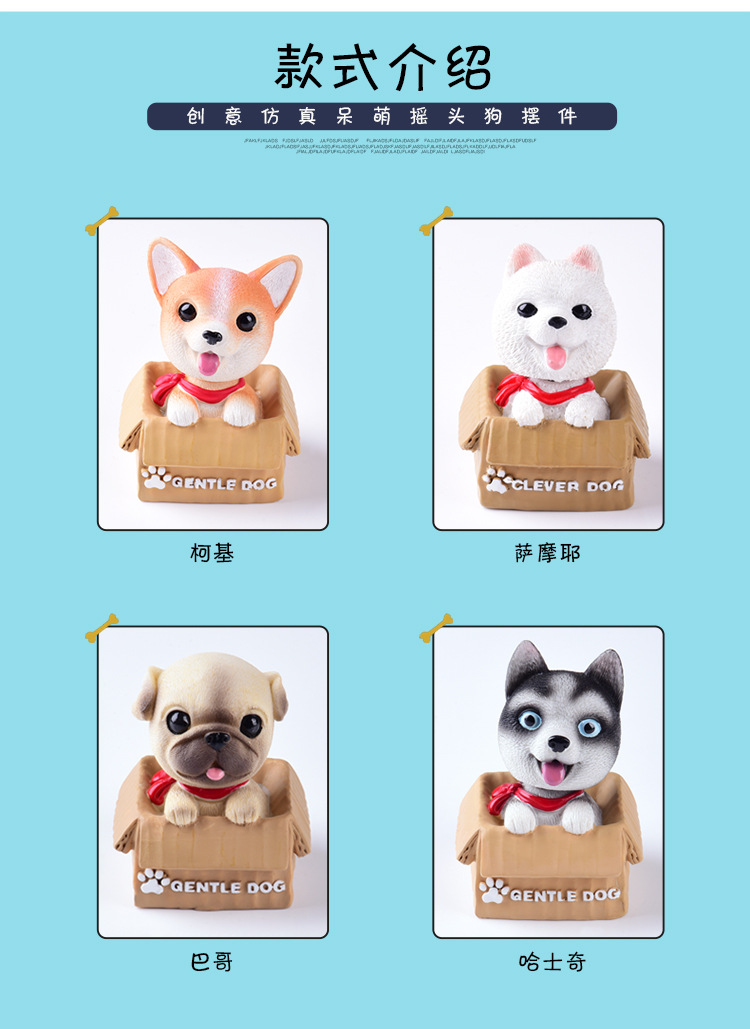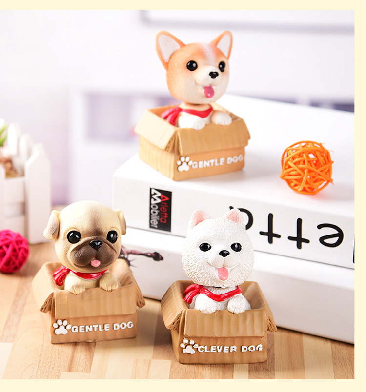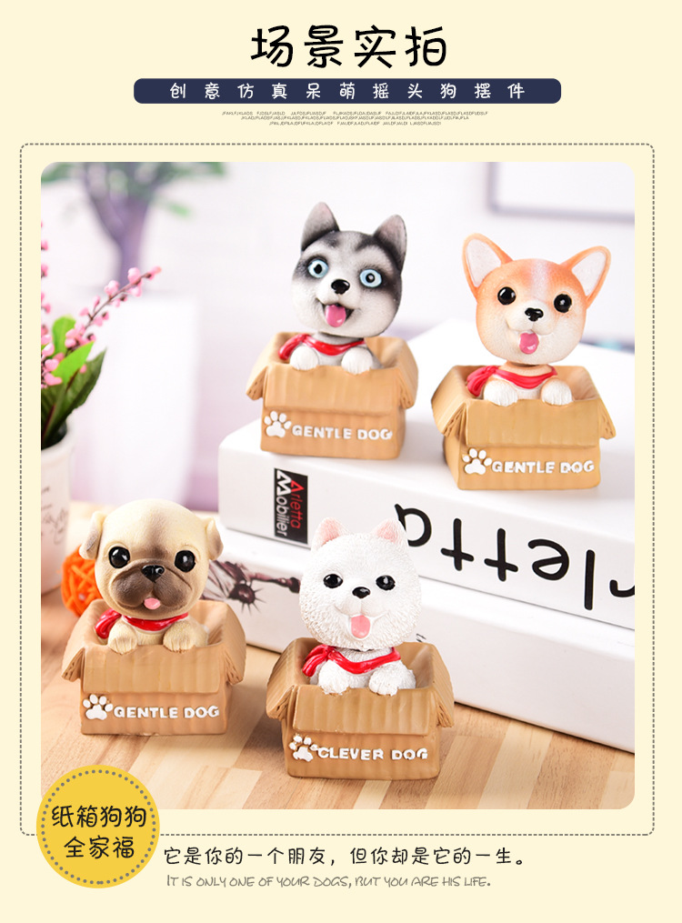 크리 에이 티브 자동차 장식품 생일 케이크 만화 쉐이크 헤드 개 상자 허스키 테디 자동차 장식 중앙 제어 인형