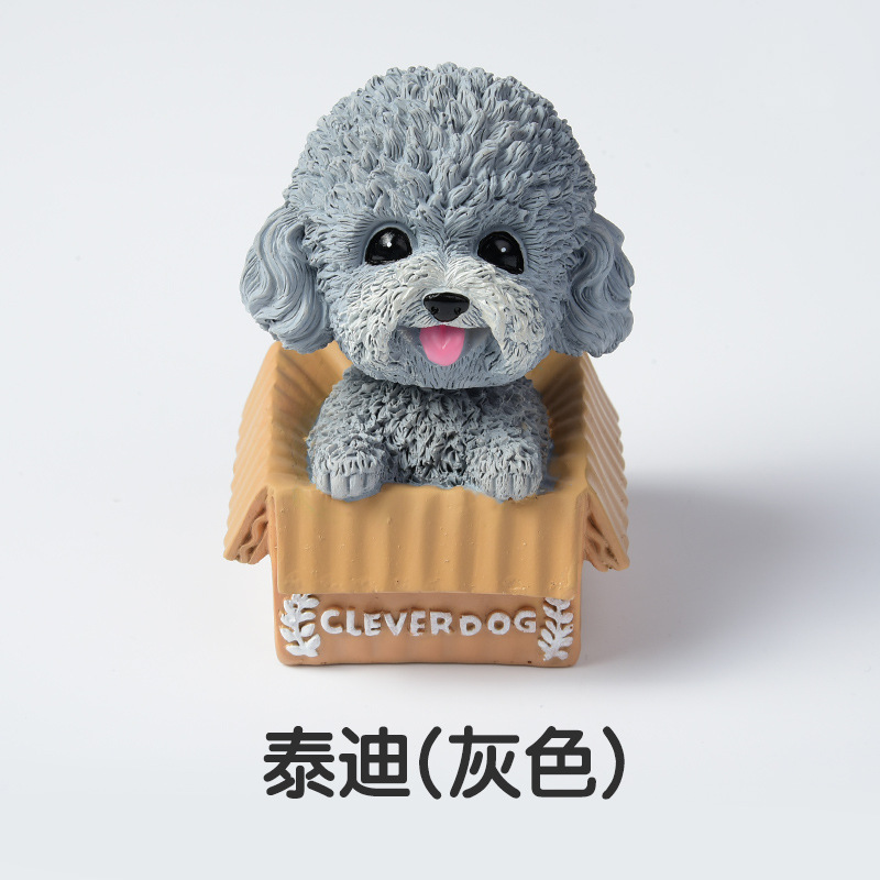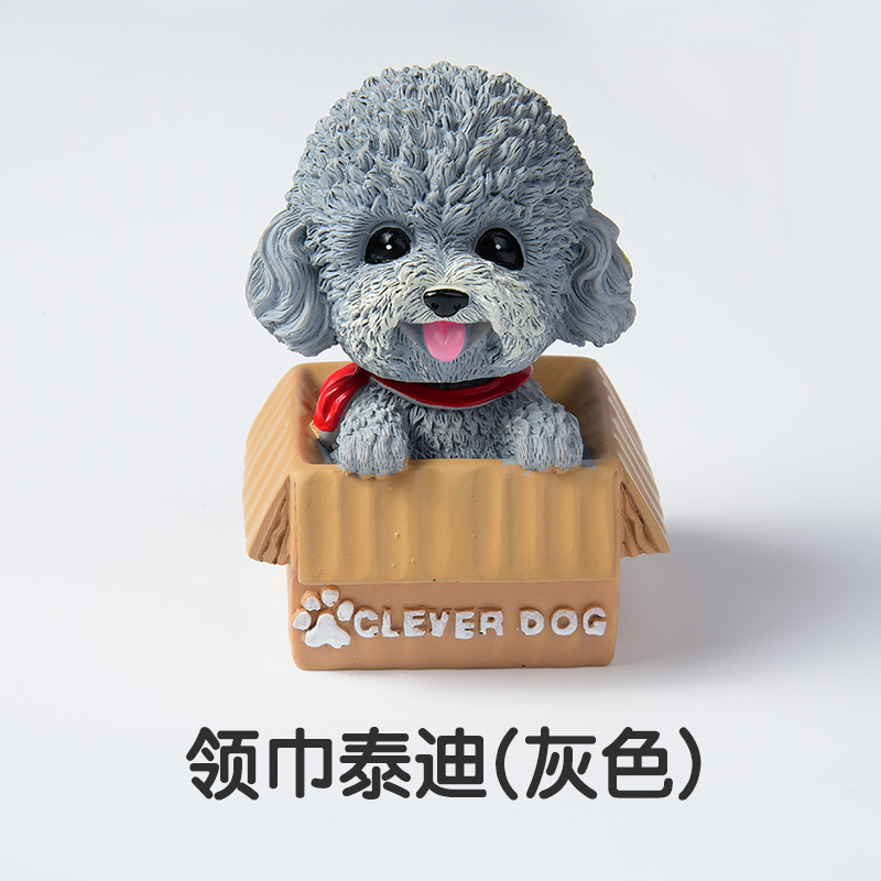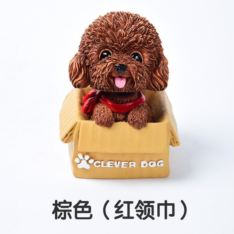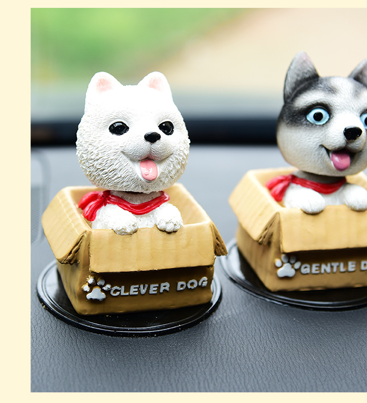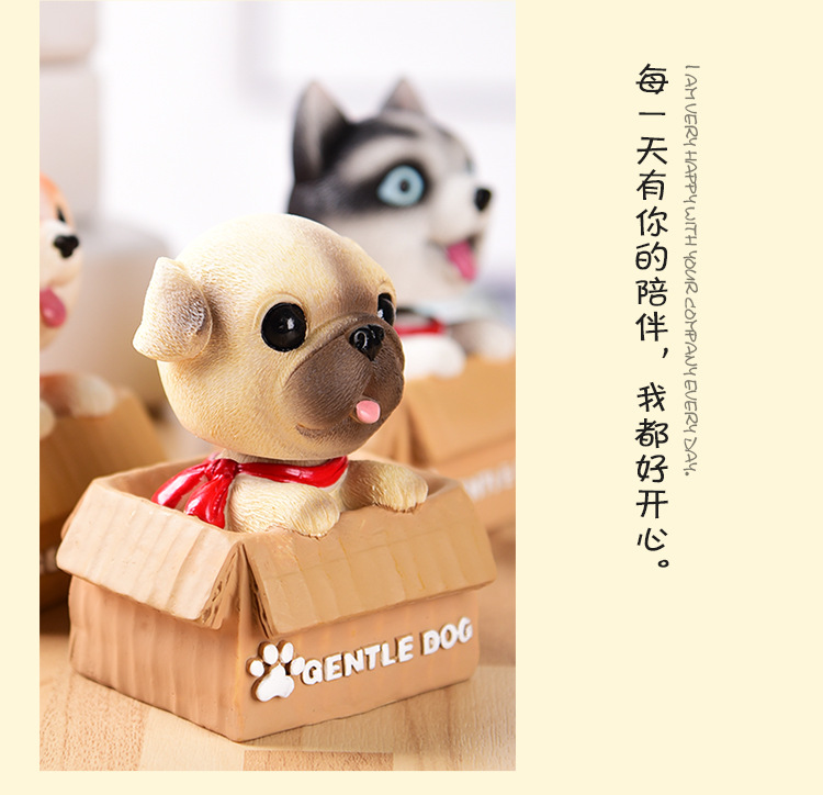 크리 에이 티브 자동차 장식품 생일 케이크 만화 쉐이크 헤드 개 상자 허스키 테디 자동차 장식 중앙 제어 인형
