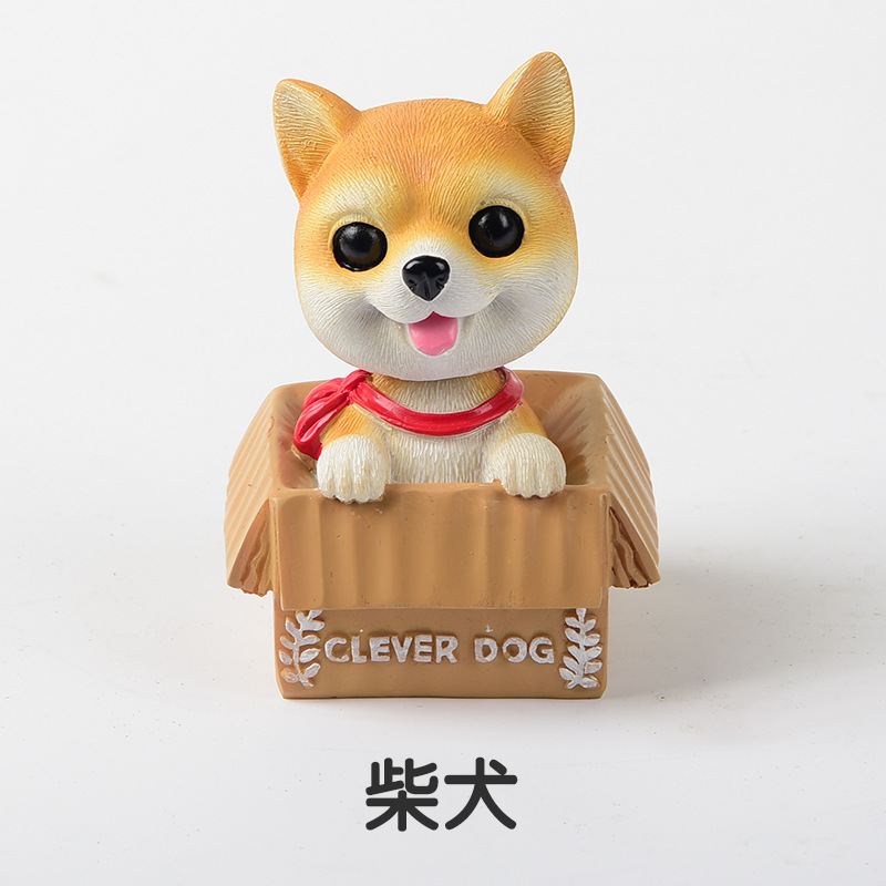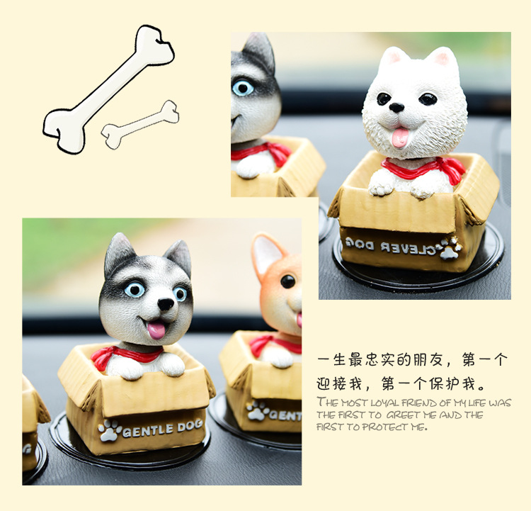 크리 에이 티브 자동차 장식품 생일 케이크 만화 쉐이크 헤드 개 상자 허스키 테디 자동차 장식 중앙 제어 인형스토어 가기