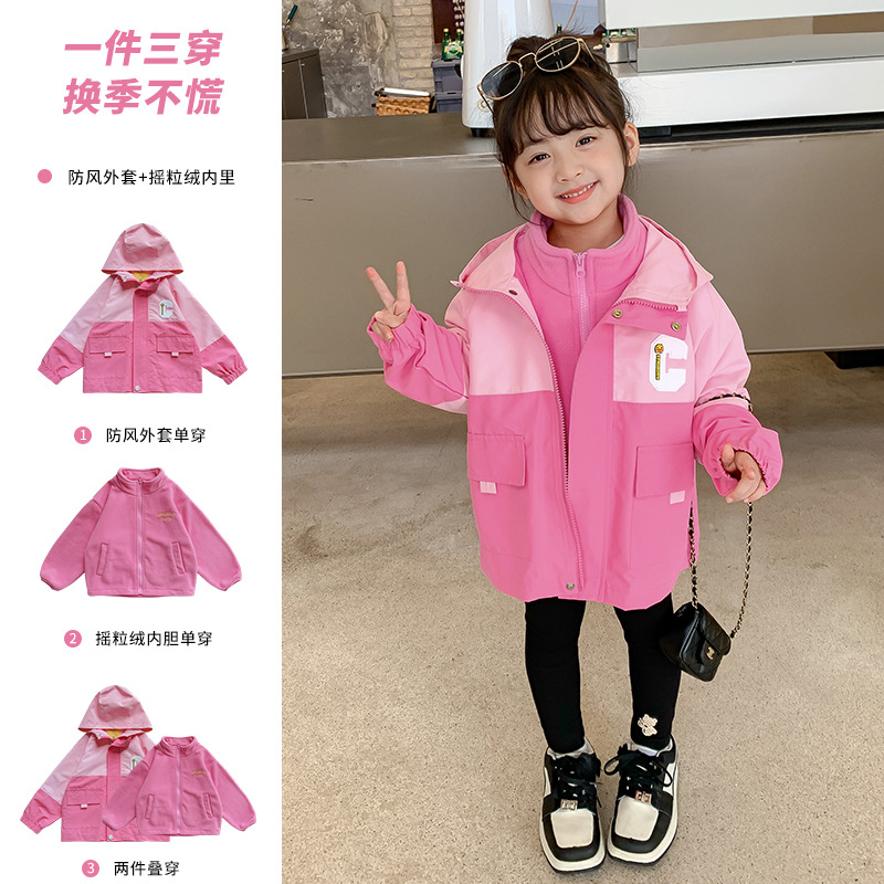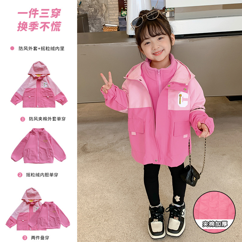 여아 코트 2023 가을 새로운 IP 조인트 어린이 퀼트 러쉬 의류 쓰리-in-one 이동식 두꺼운 아기 소녀