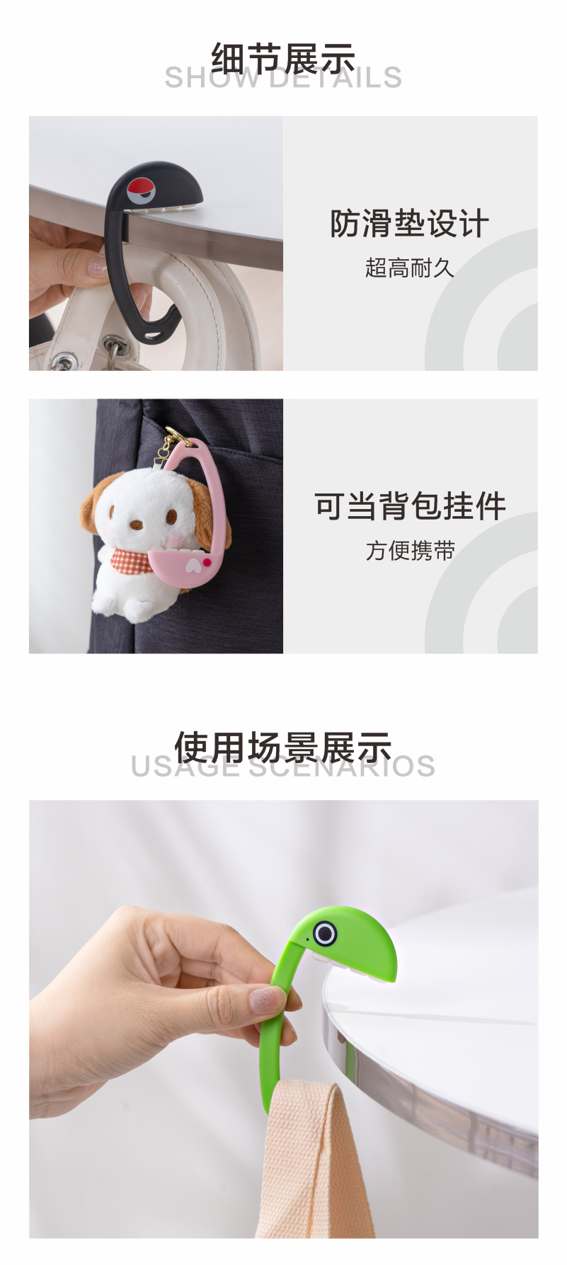 플라스틱 다기능 데스크탑 가방 걸이 미끄럼 방지 휴대용 학생 책상 가방 무접착 걸이스토어 가기