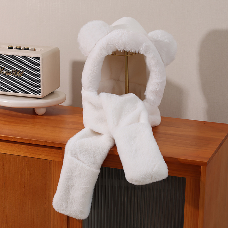 겨울 귀여운 털이 많은 큰 귀 곰 모자, 멋진 두꺼운 따뜻한 스카프와 장갑 3종 세트, 야외용 겨울 모자스토어 가기