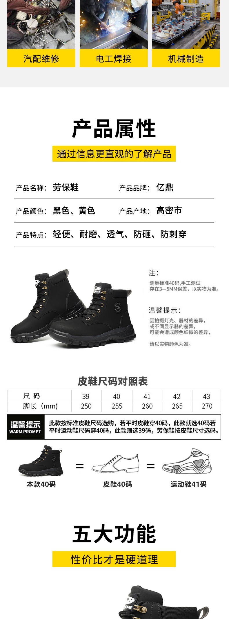 • YD-ZS010 로우탑 브라운 펑크 방지 노동 보호 신발;38