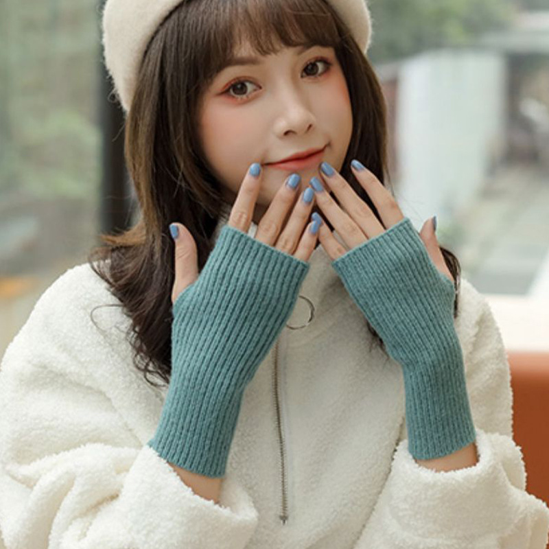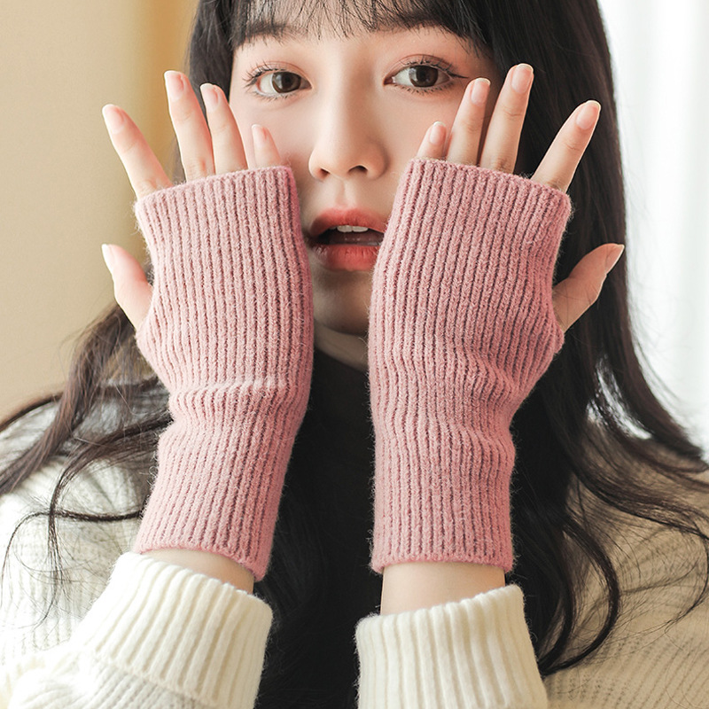 남성과 여성을위한 반 손가락 장갑 자기 난방 기모 학생 쓰기 따뜻한 가을과 겨울 뜨개질 손가락 노출 반-손가락으로 손바닥 타이핑스토어 가기