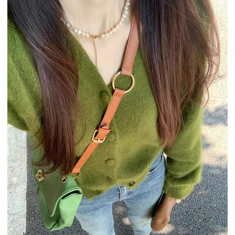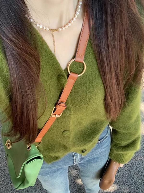 녹색 스웨터 여성의 2023 가을과 겨울 새로운 게으른 복고풍 부드러운 왁스 토끼 모피 V-넥 니트 코트 작은 탑스토어 가기