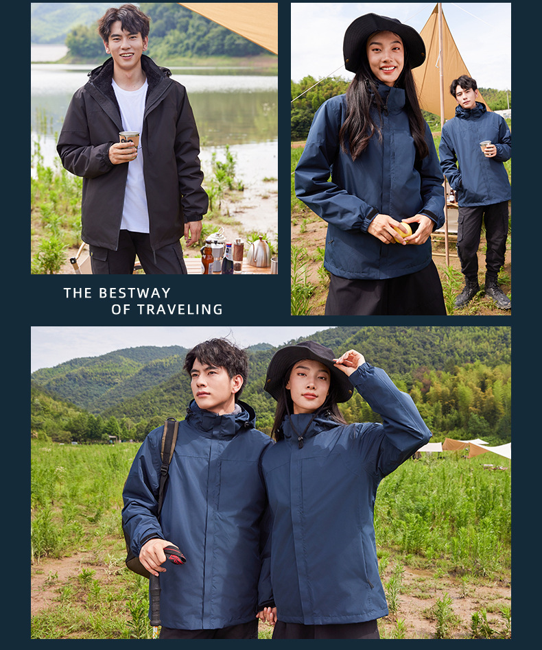 야외 접착 3-in-1 러쉬 의류 남성용 분리형 투피스 스키 세트 여성용 방풍 및 방수 낚시 세트스토어 가기