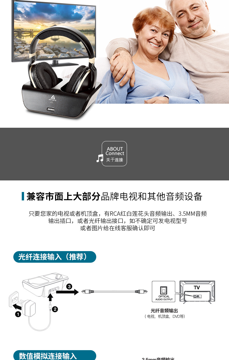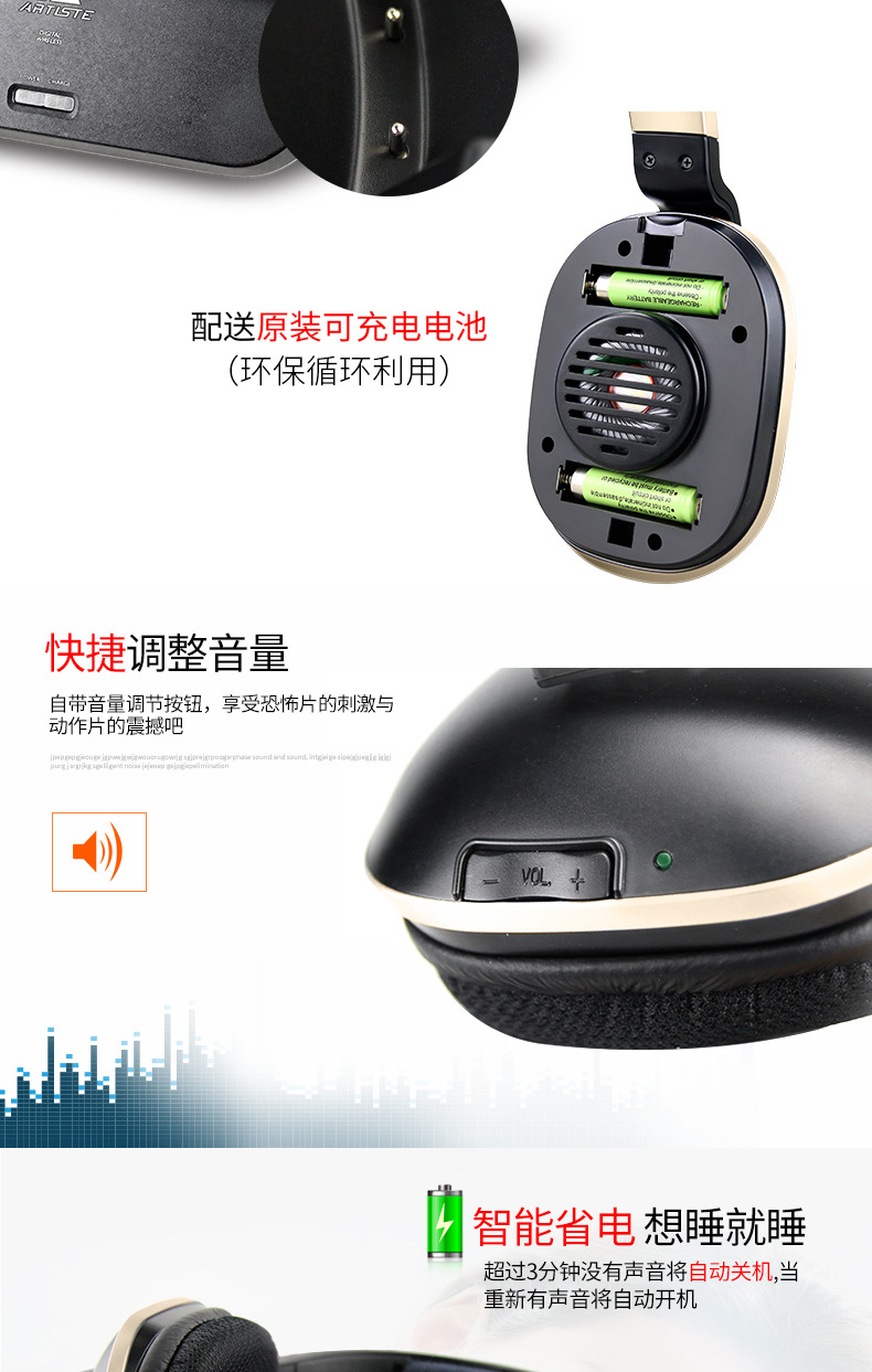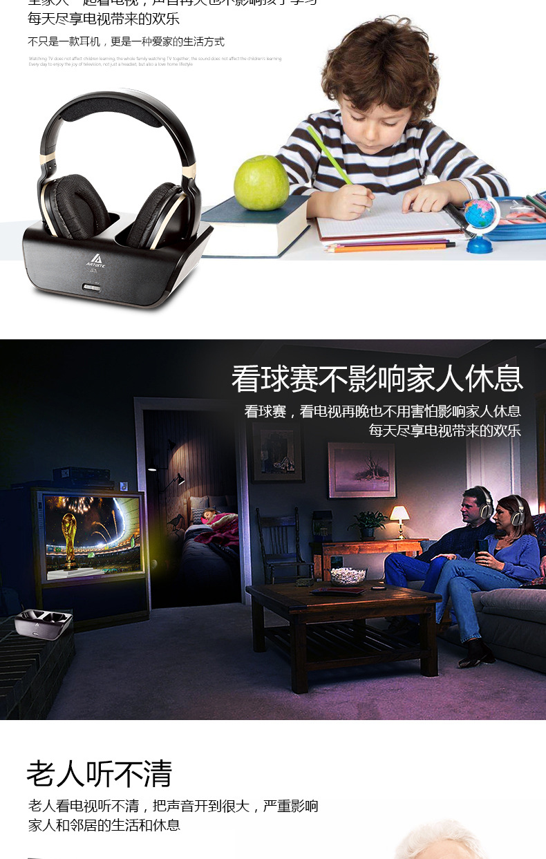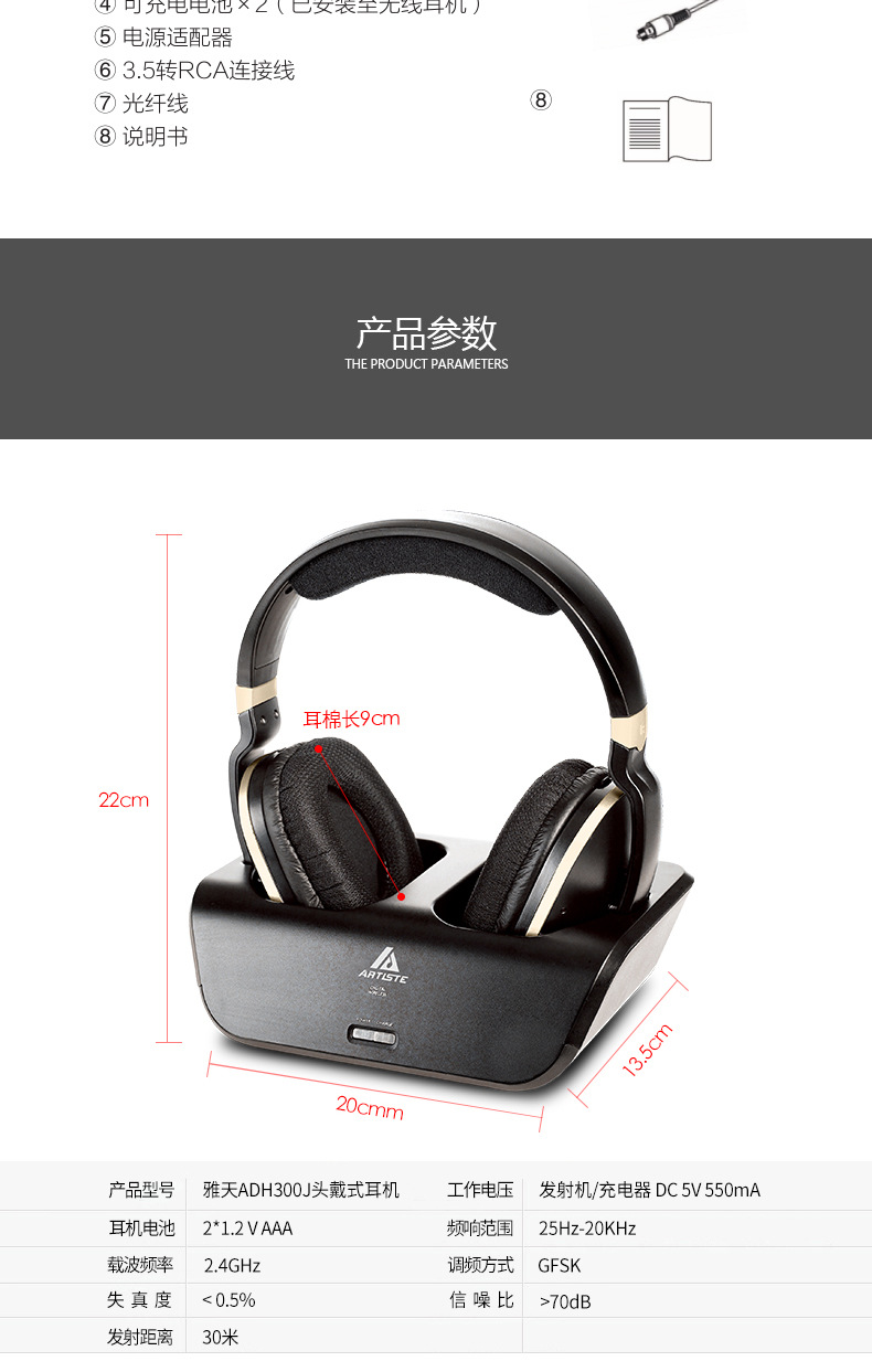 ARTISTE ADH300J 컴퓨터 TV 2.4g 노인 가정용 무선 헤드셋 헤드셋 TV 헤드셋