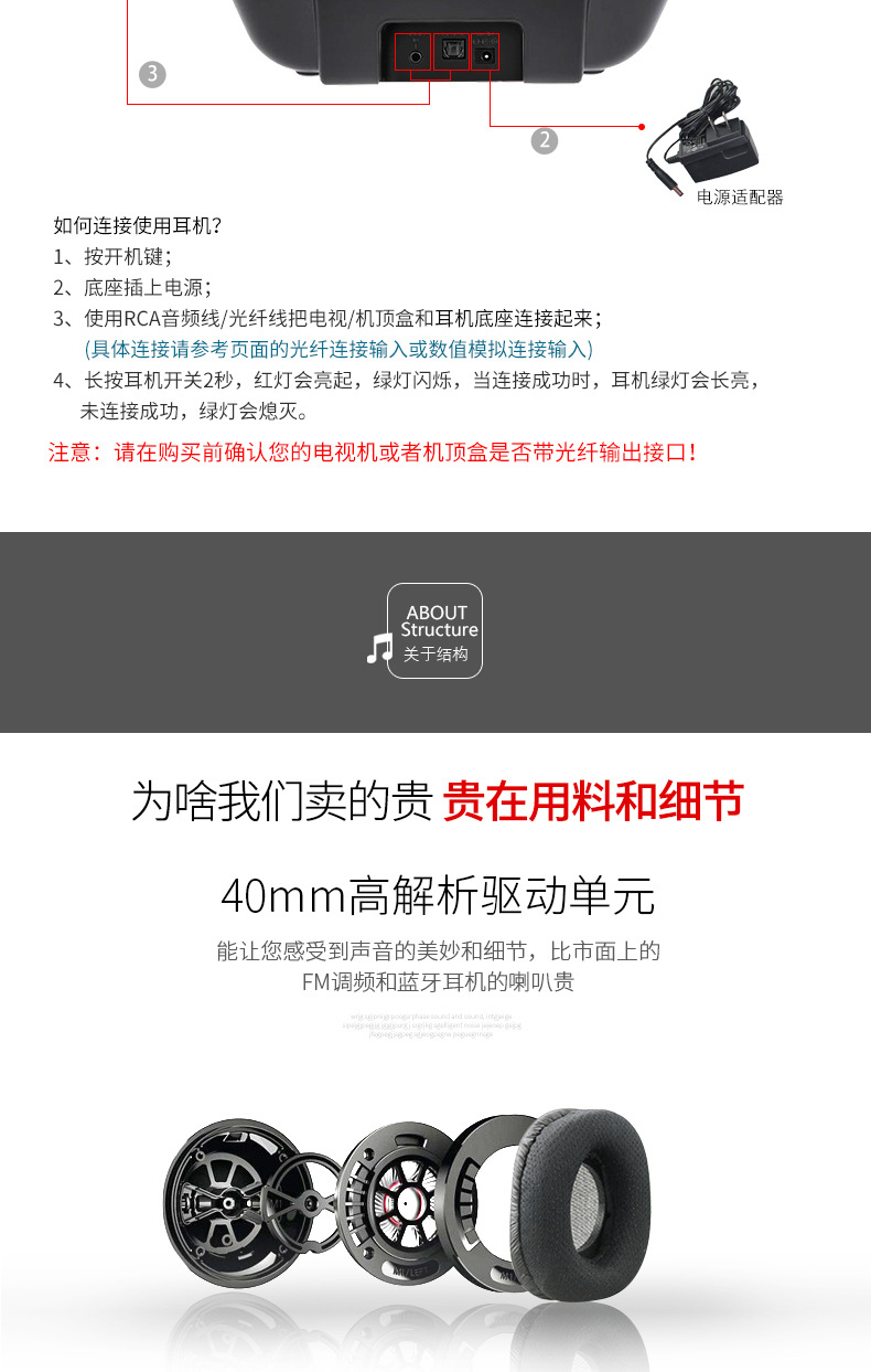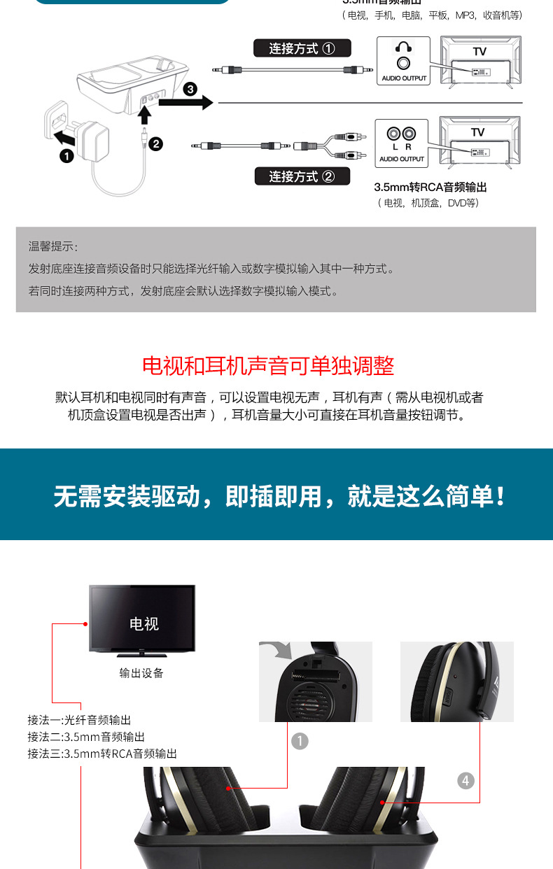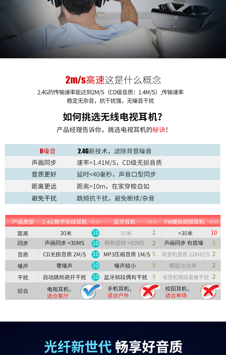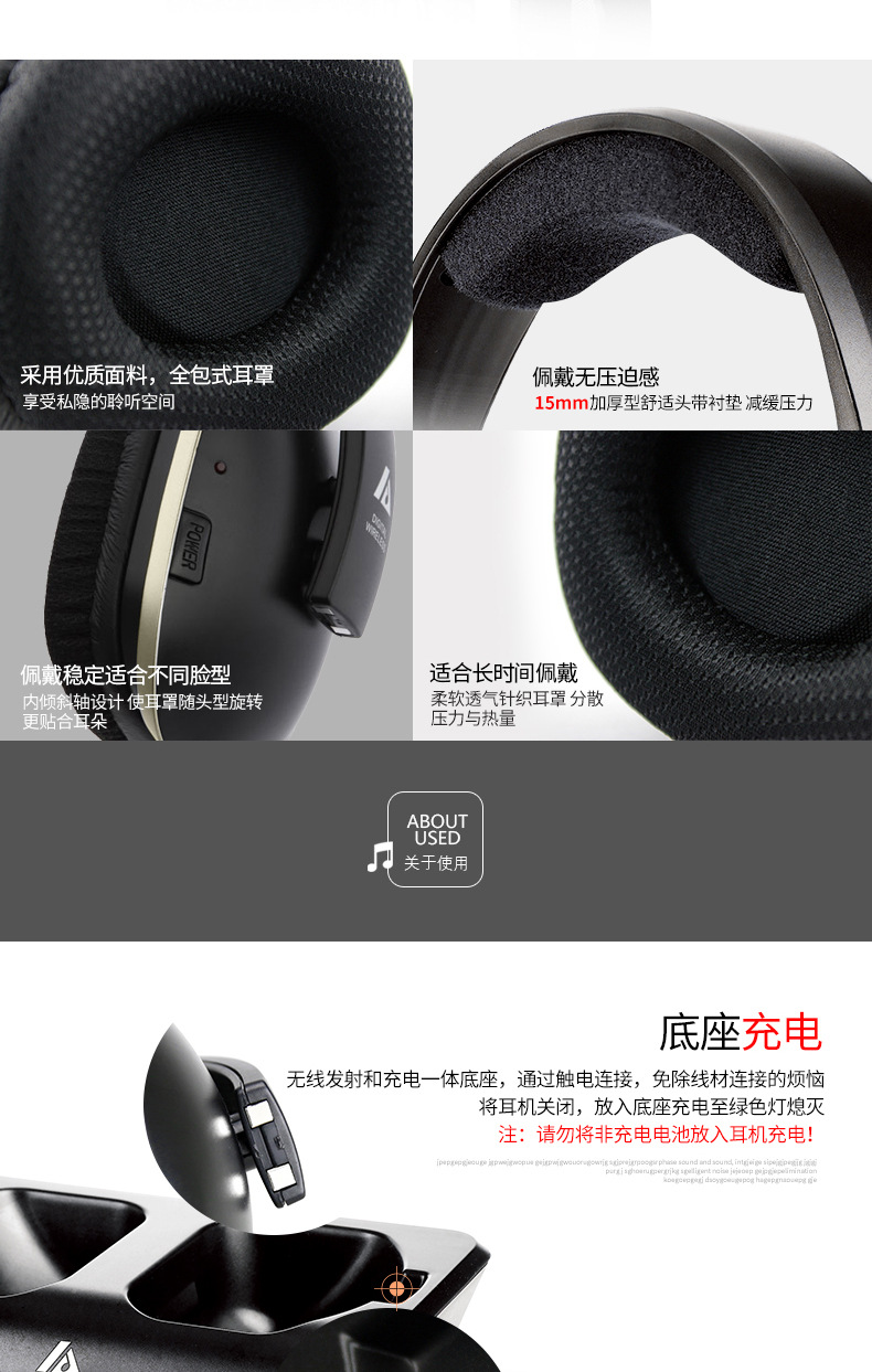 ARTISTE ADH300J 컴퓨터 TV 2.4g 노인 가정용 무선 헤드셋 헤드셋 TV 헤드셋