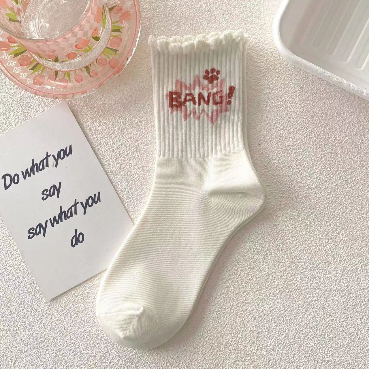 핑크색 양말 여성용 중간 길이 인스타 트렌드 다용도 가을 겨울 한국 귀여운 곰돌이 달콤한 학생 스포츠 양말 내구성