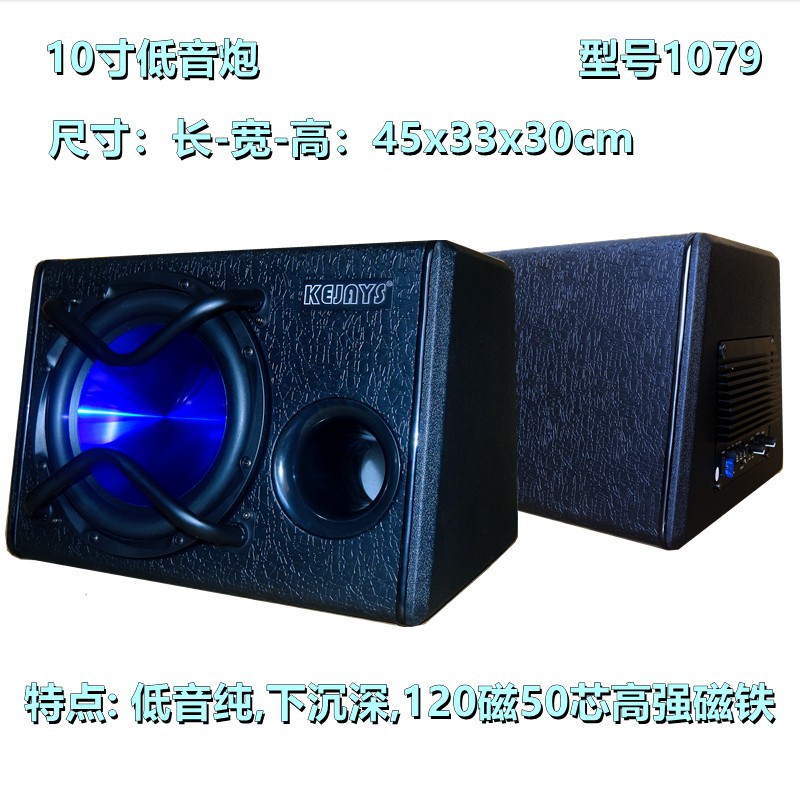 低音炮特点,全频-低频-相位-可调,低音好-下潜深,采用大音圈50芯120磁高强度超重低音喇叭