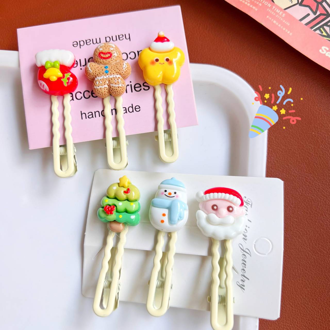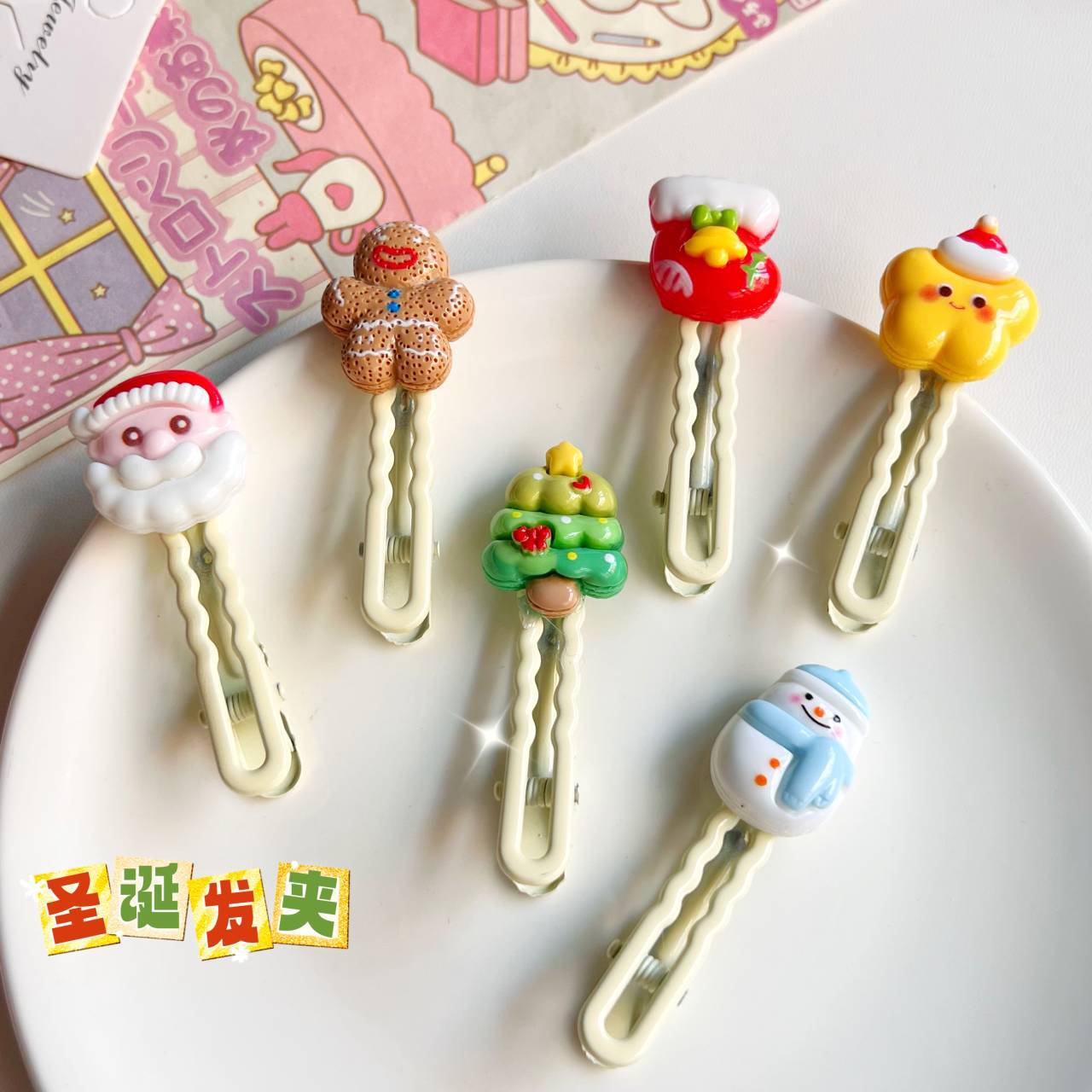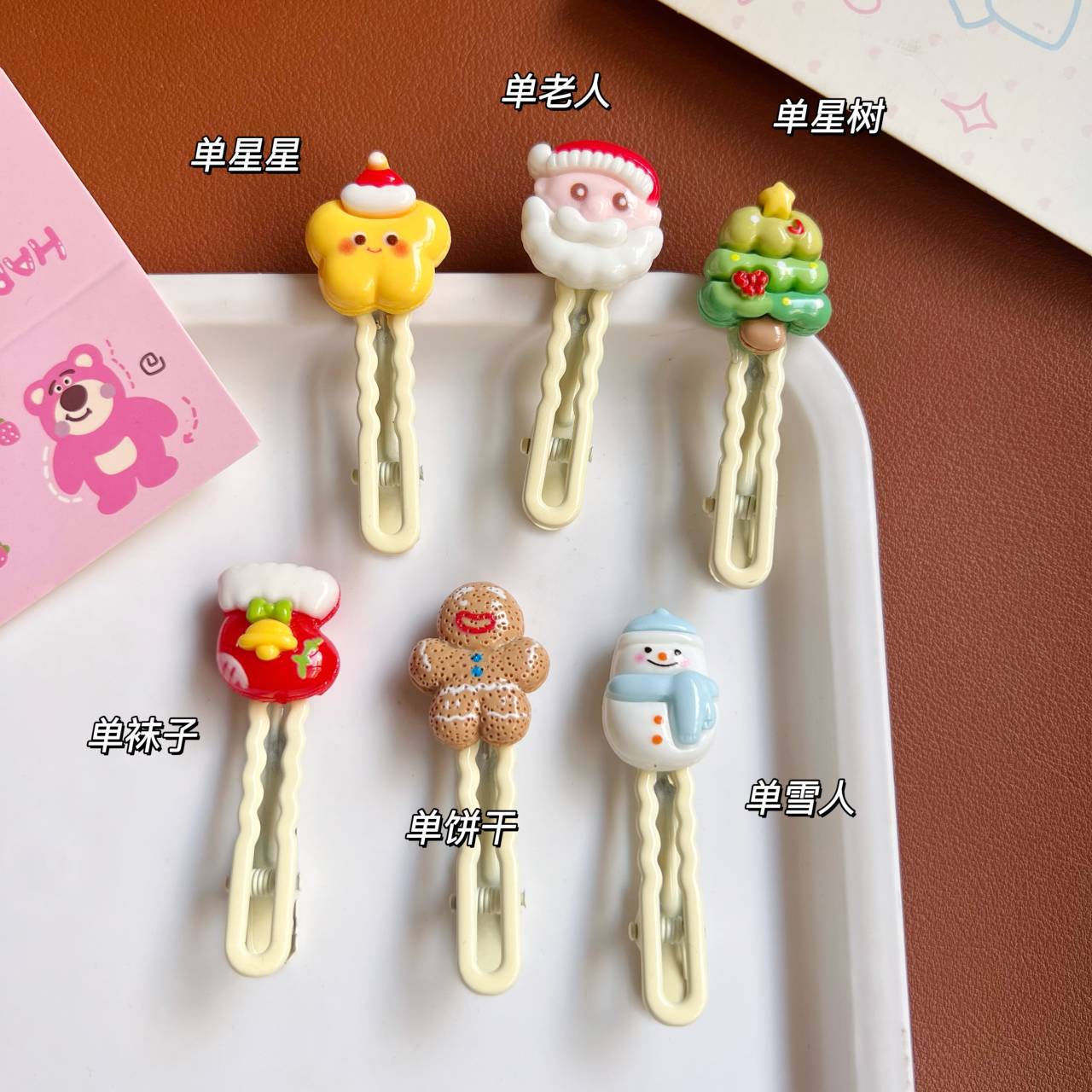 크리스마스 머리핀 새해 크리스마스 휴일 분위기 귀여운 만화 크리스마스 트리 진저 브레드 눈사람 별 머리 장식 헤어 액세서리