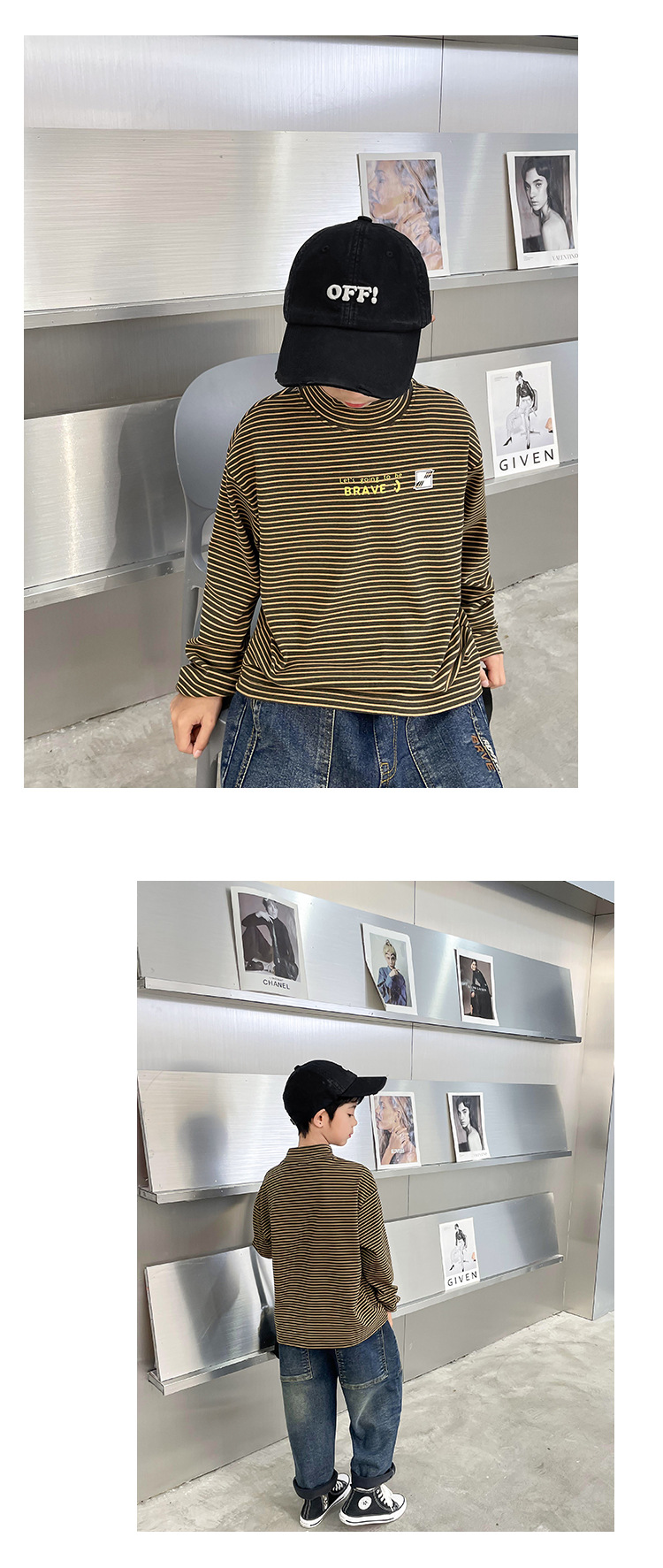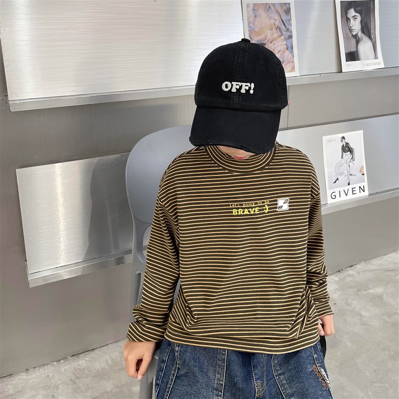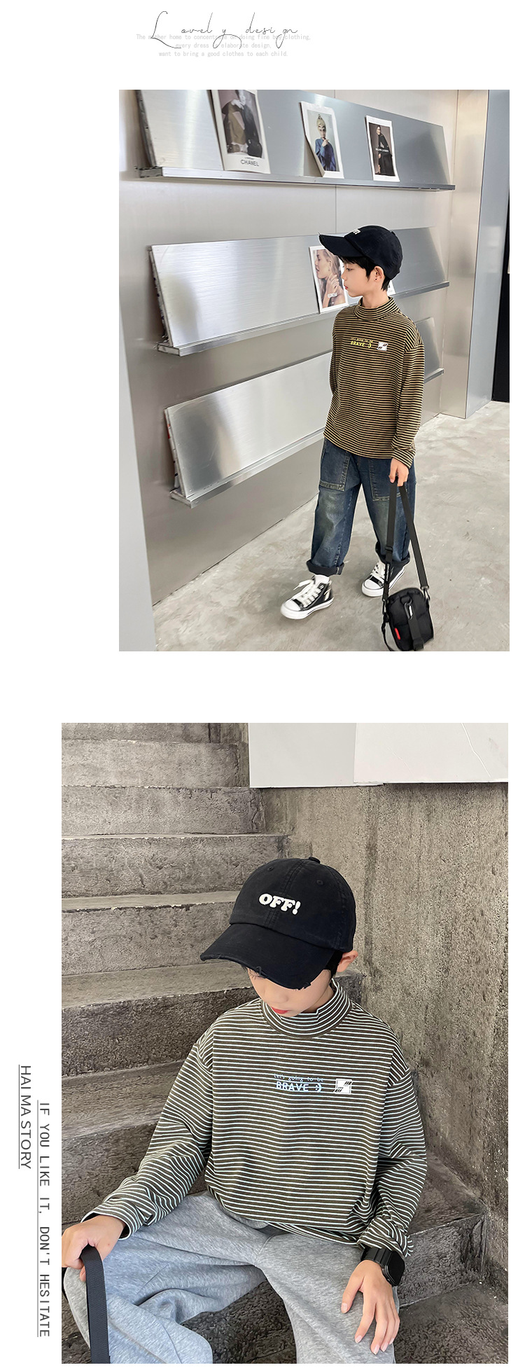 Haimaojia 소년 스트라이프 독일 벨벳 긴팔 바닥 셔츠 유행 아동복 24 가을 겨울 신작 아동 따뜻한 겨울 티셔츠스토어 가기