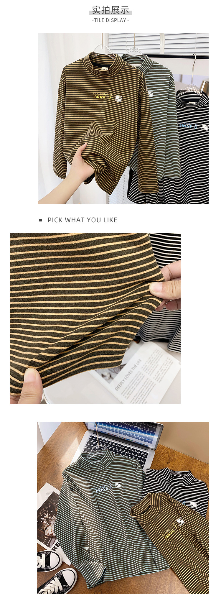 Haimaojia 소년 스트라이프 독일 벨벳 긴팔 바닥 셔츠 유행 아동복 24 가을 겨울 신작 아동 따뜻한 겨울 티셔츠