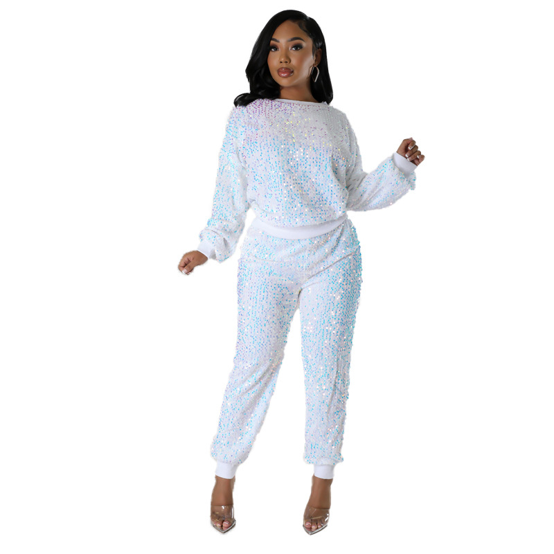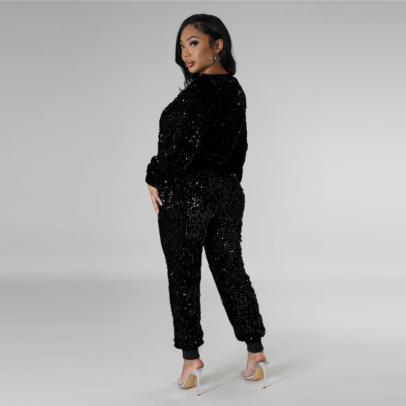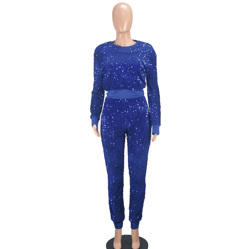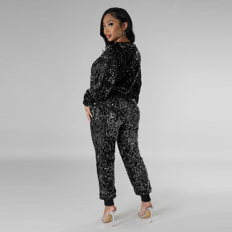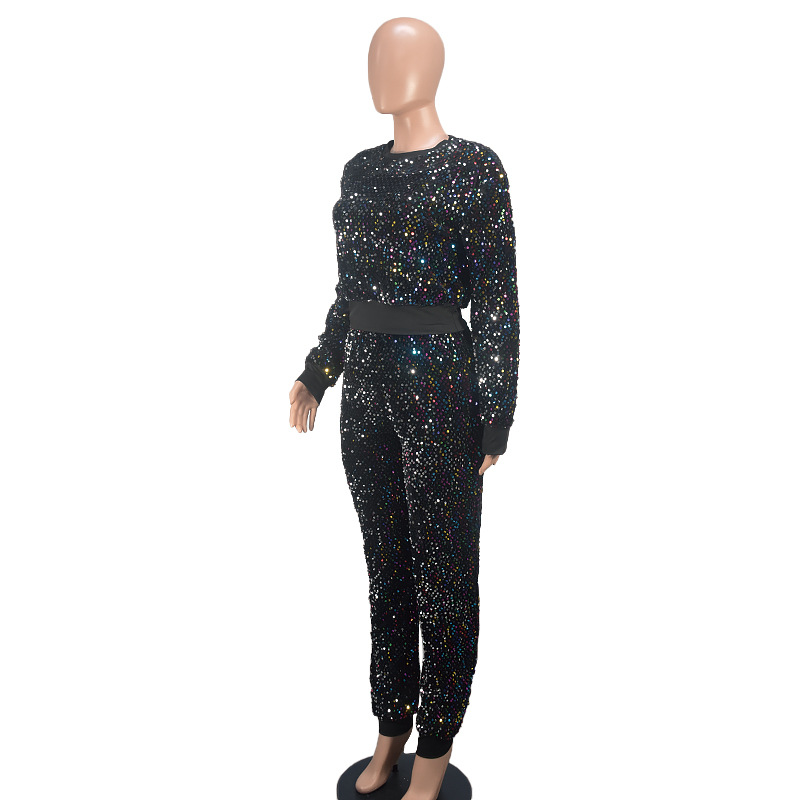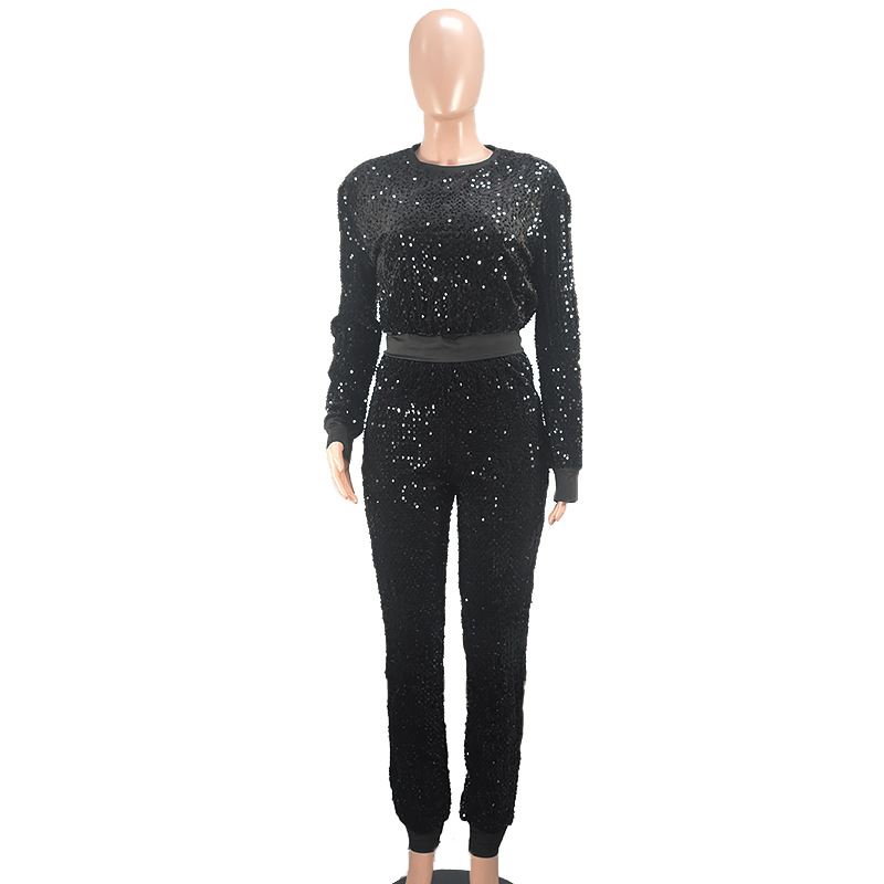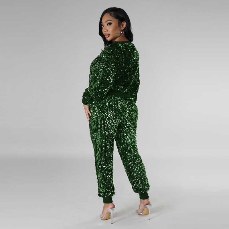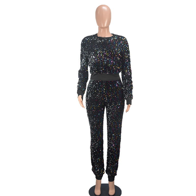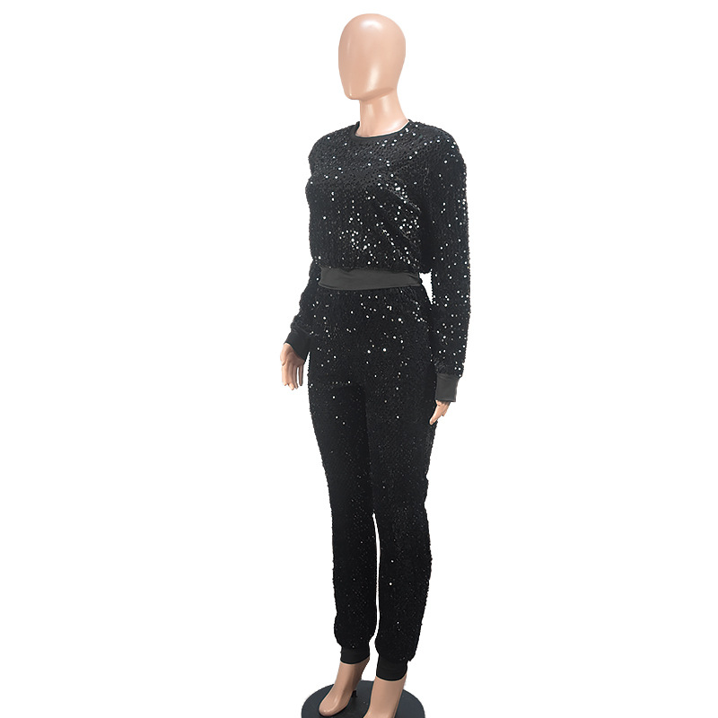 9450 아마존 크로스 보더 유럽과 미국 여성 긴팔 세트 가을과 겨울 뉴 패션 파티 스팽글 캐주얼 투피스 세트
