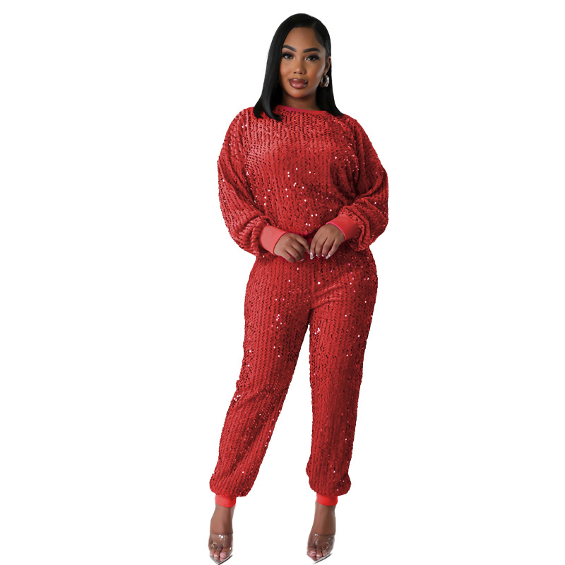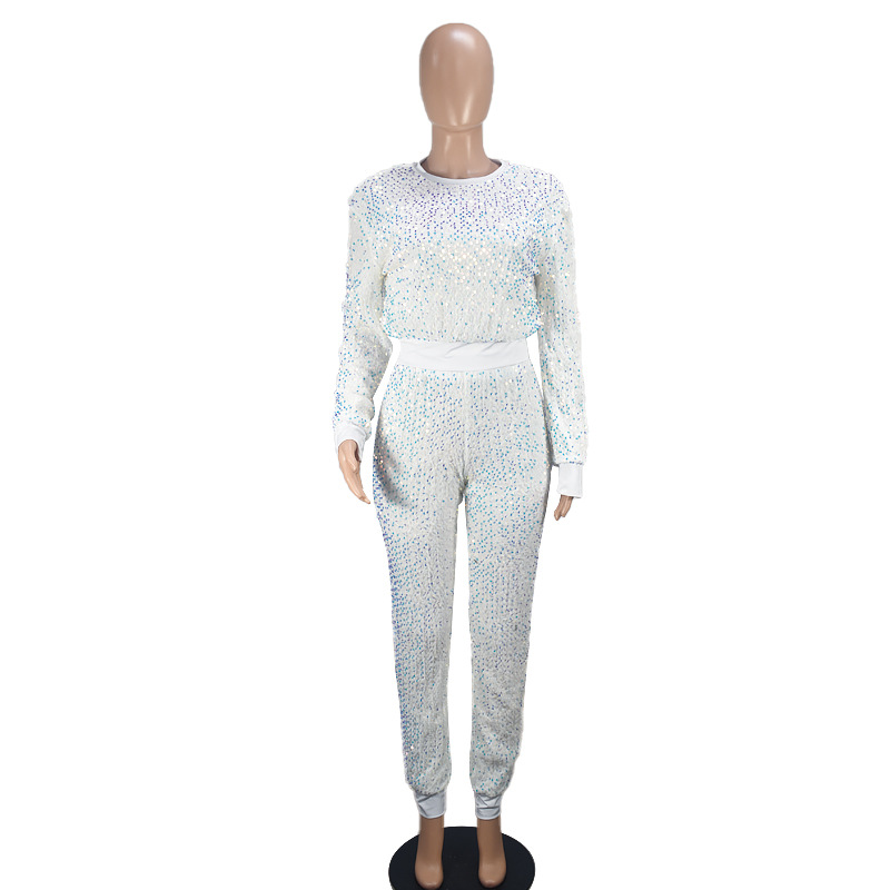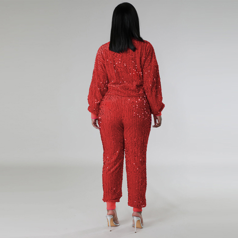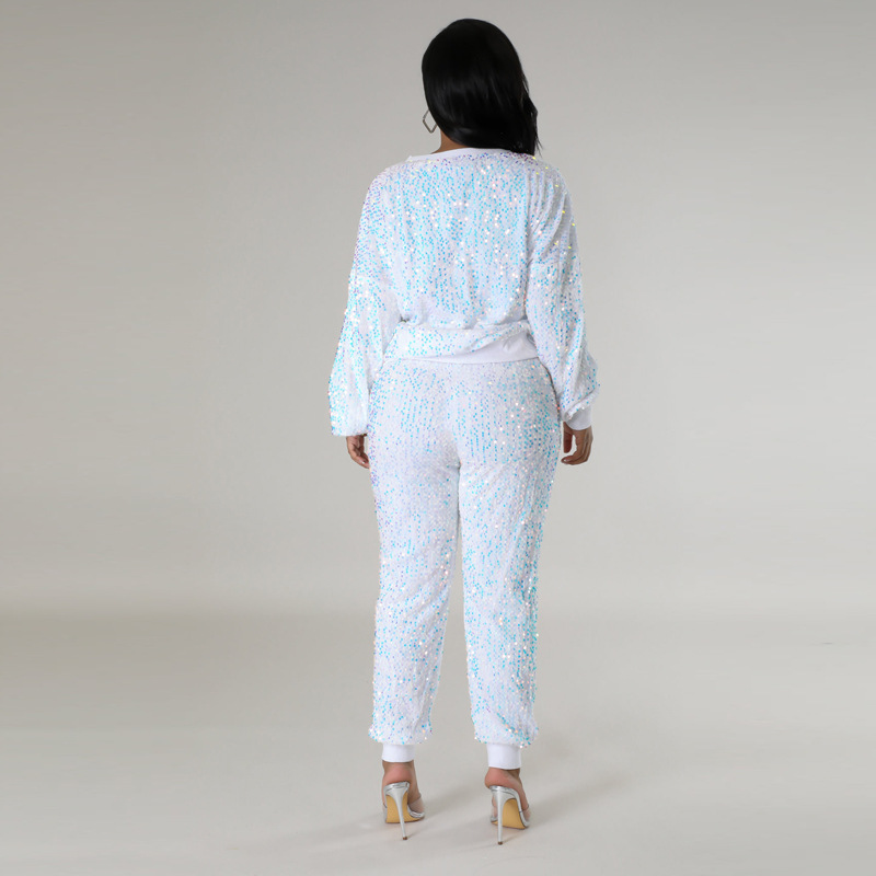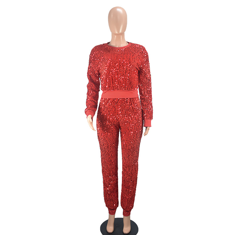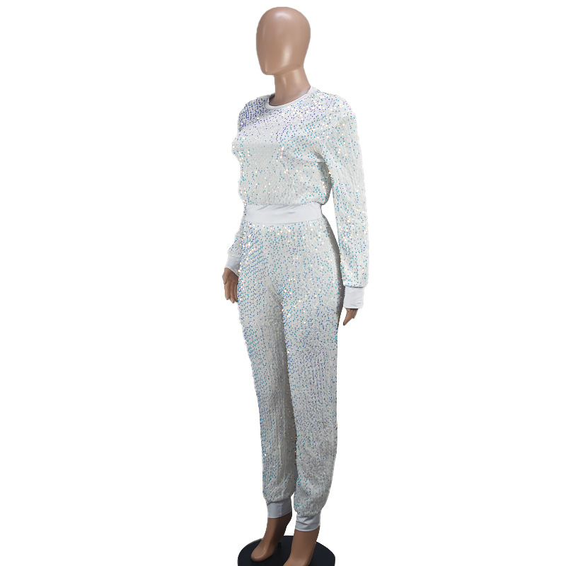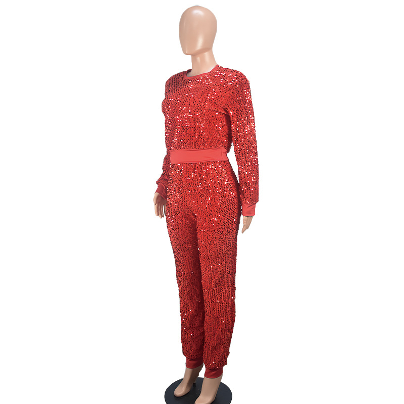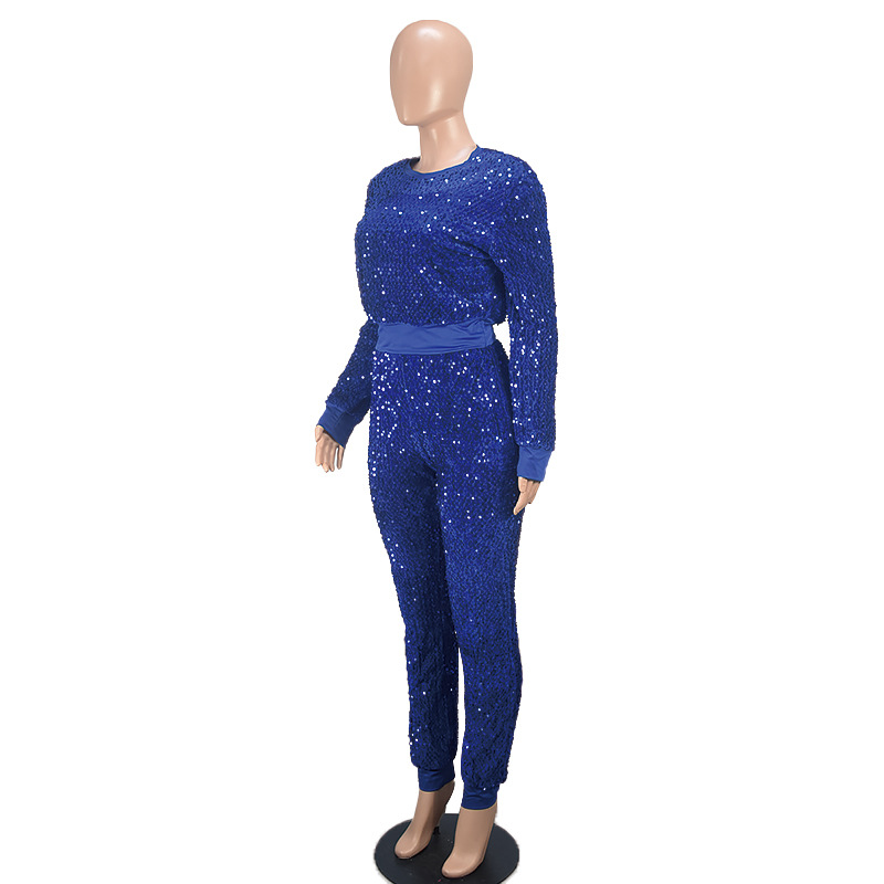 9450 아마존 크로스 보더 유럽과 미국 여성 긴팔 세트 가을과 겨울 뉴 패션 파티 스팽글 캐주얼 투피스 세트
