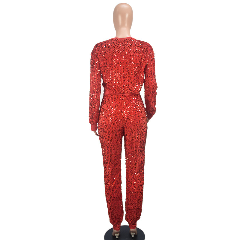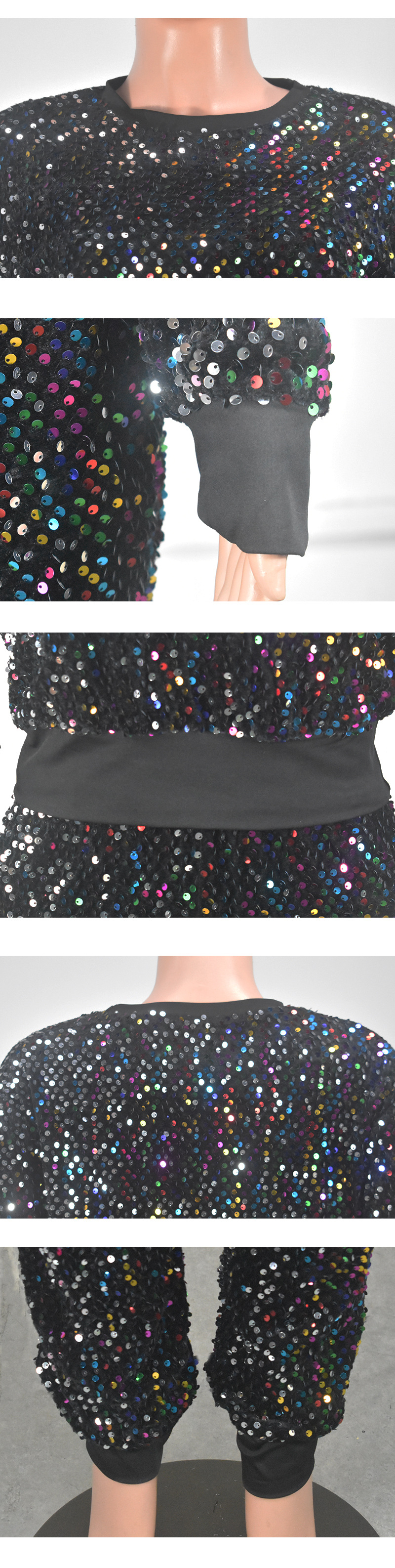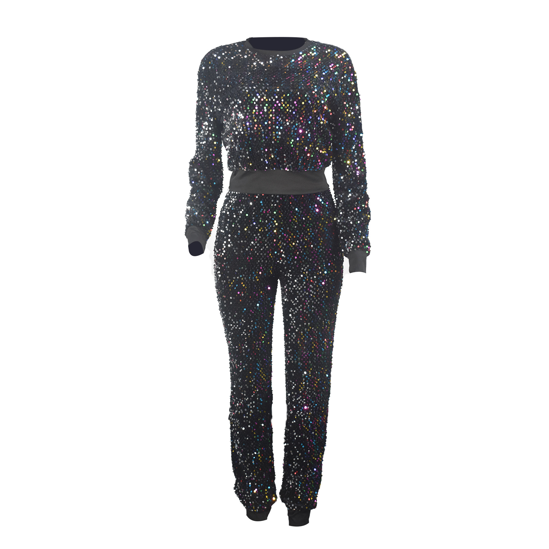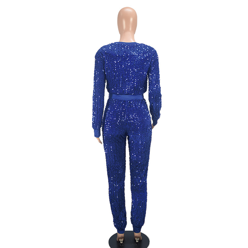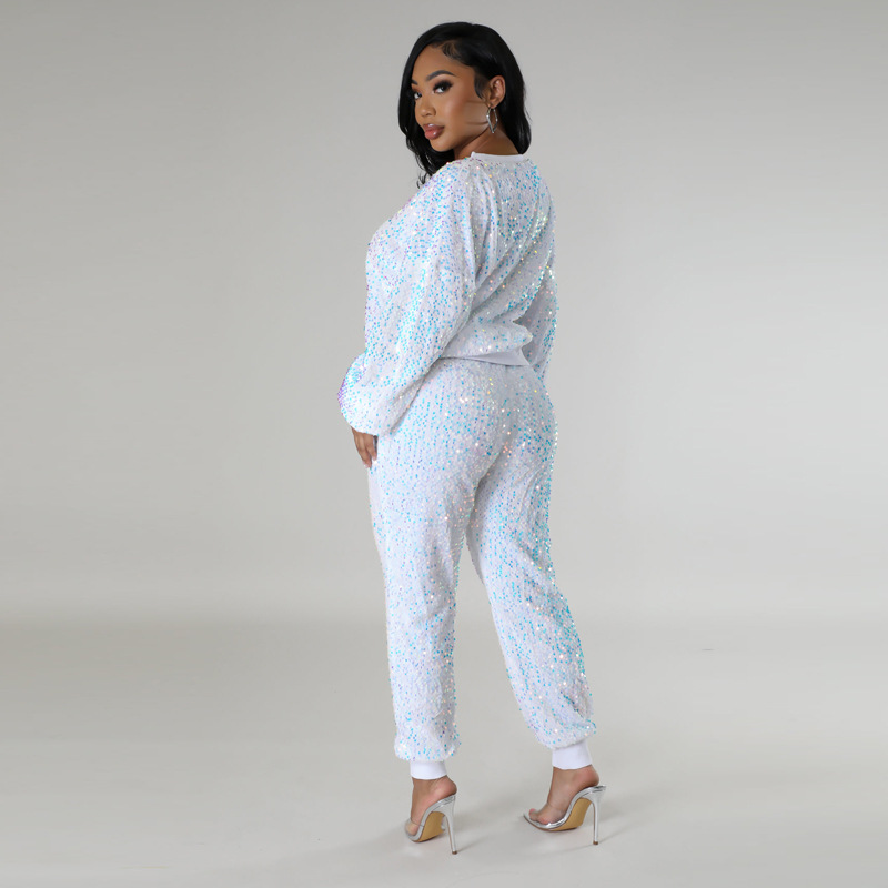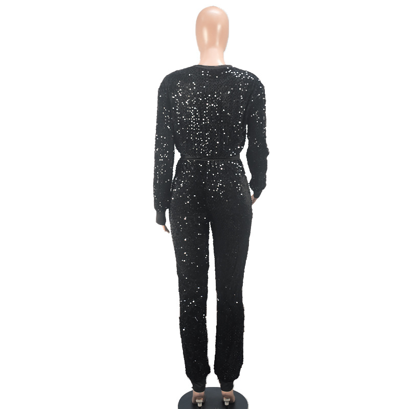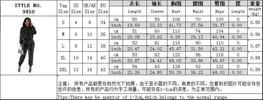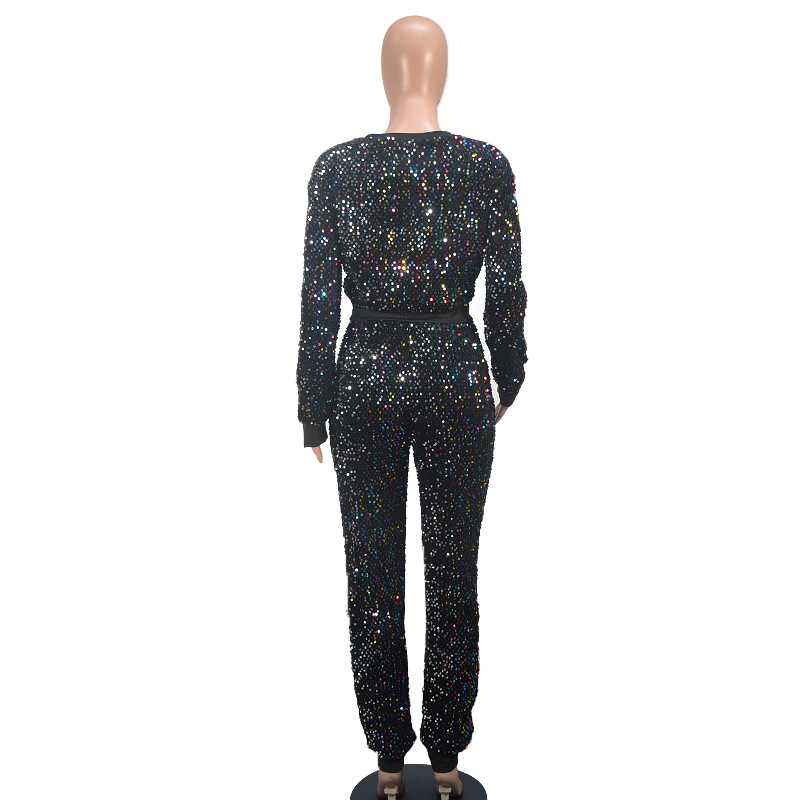 9450 아마존 크로스 보더 유럽과 미국 여성 긴팔 세트 가을과 겨울 뉴 패션 파티 스팽글 캐주얼 투피스 세트