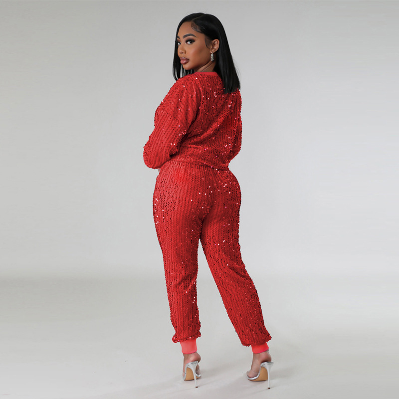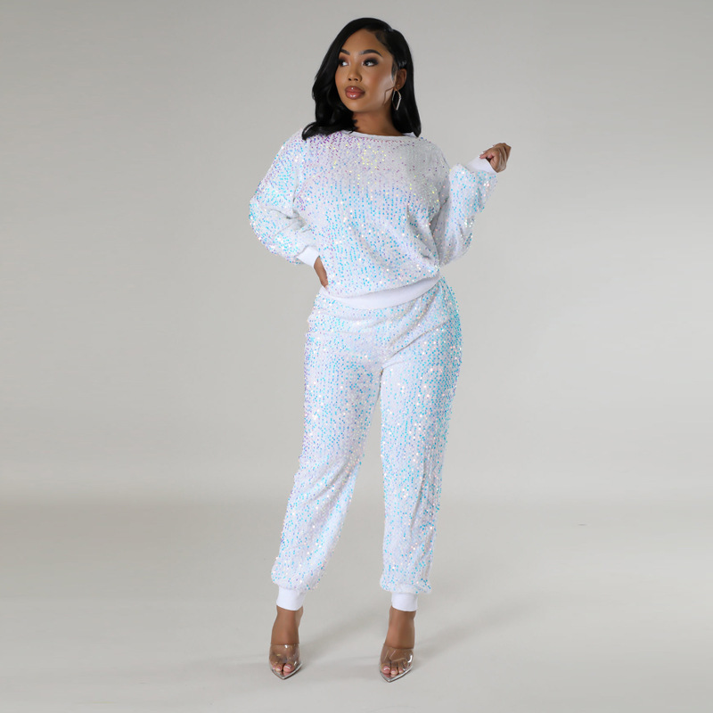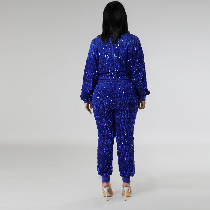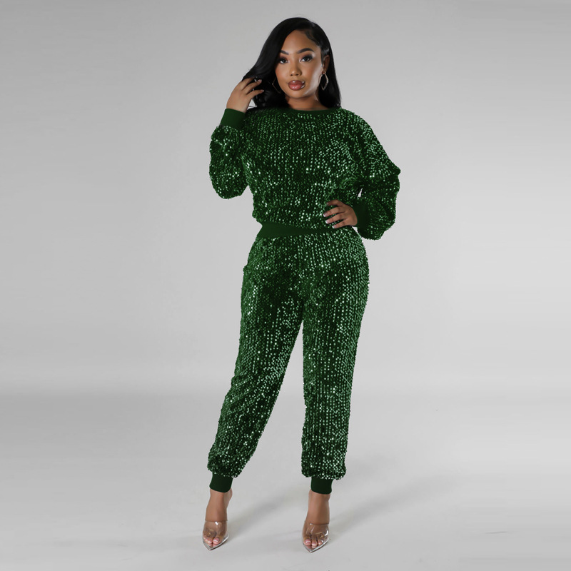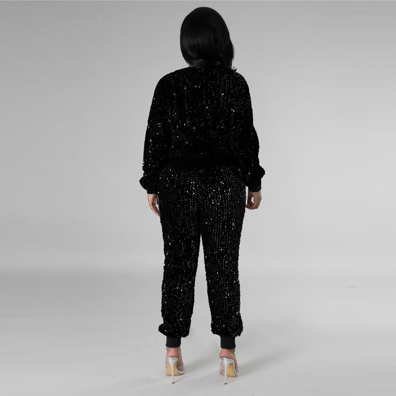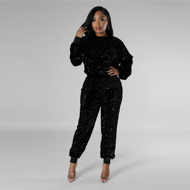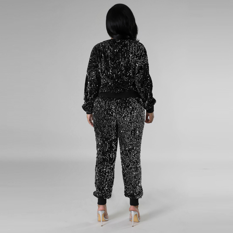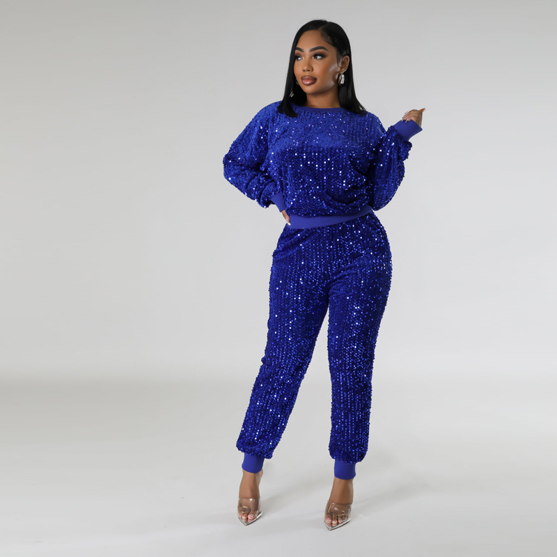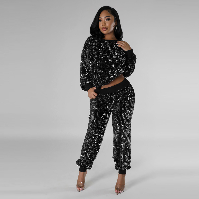 9450 아마존 크로스 보더 유럽과 미국 여성 긴팔 세트 가을과 겨울 뉴 패션 파티 스팽글 캐주얼 투피스 세트스토어 가기