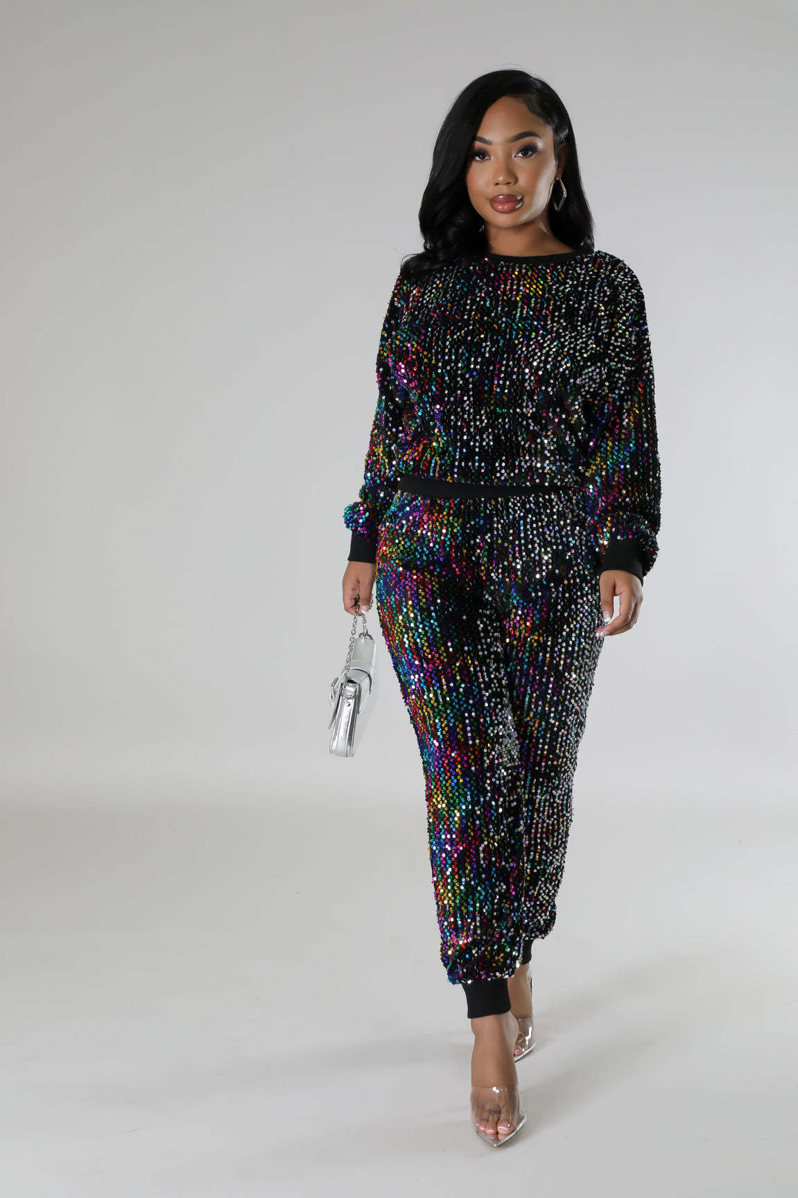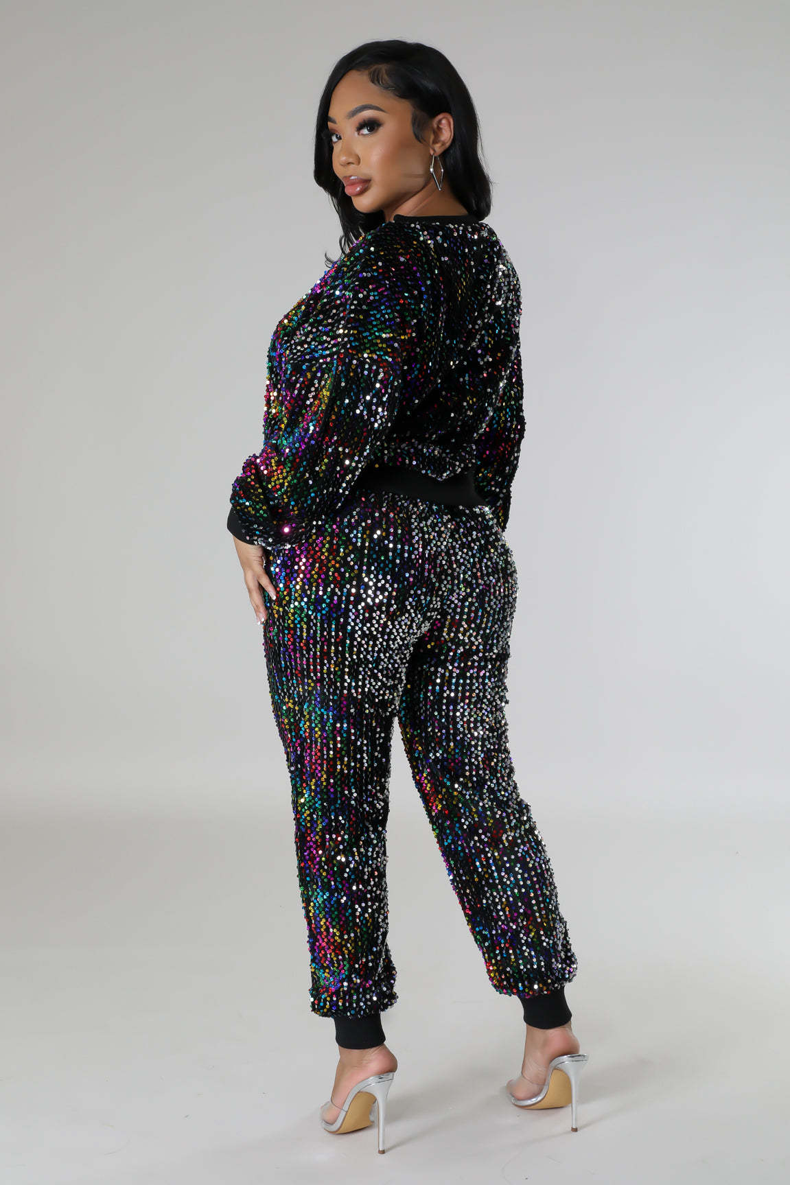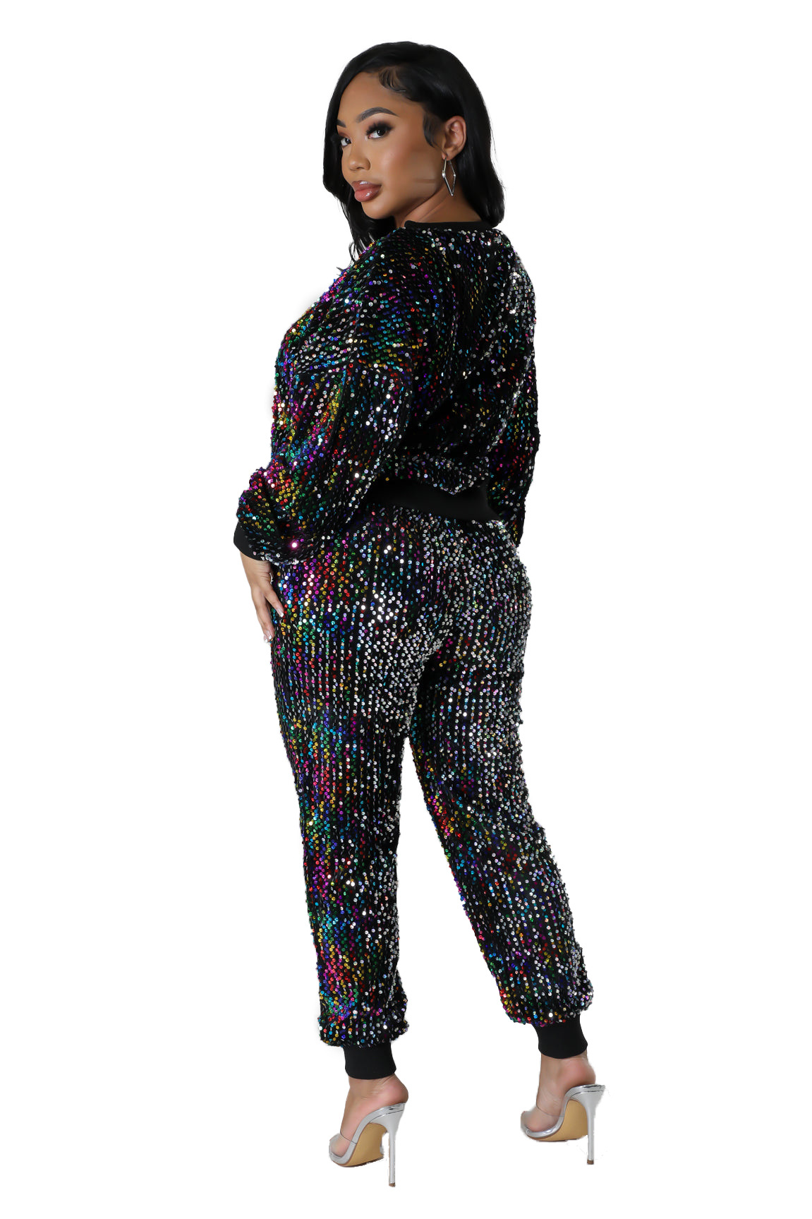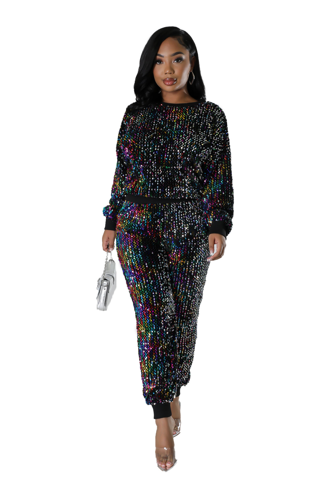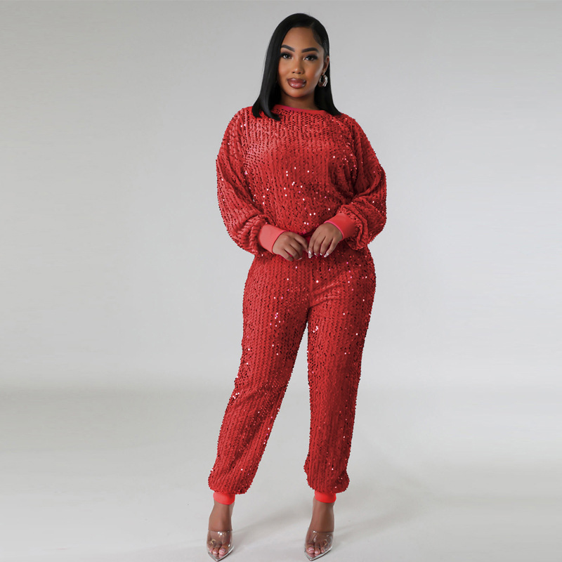 9450 아마존 크로스 보더 유럽과 미국 여성 긴팔 세트 가을과 겨울 뉴 패션 파티 스팽글 캐주얼 투피스 세트스토어 가기