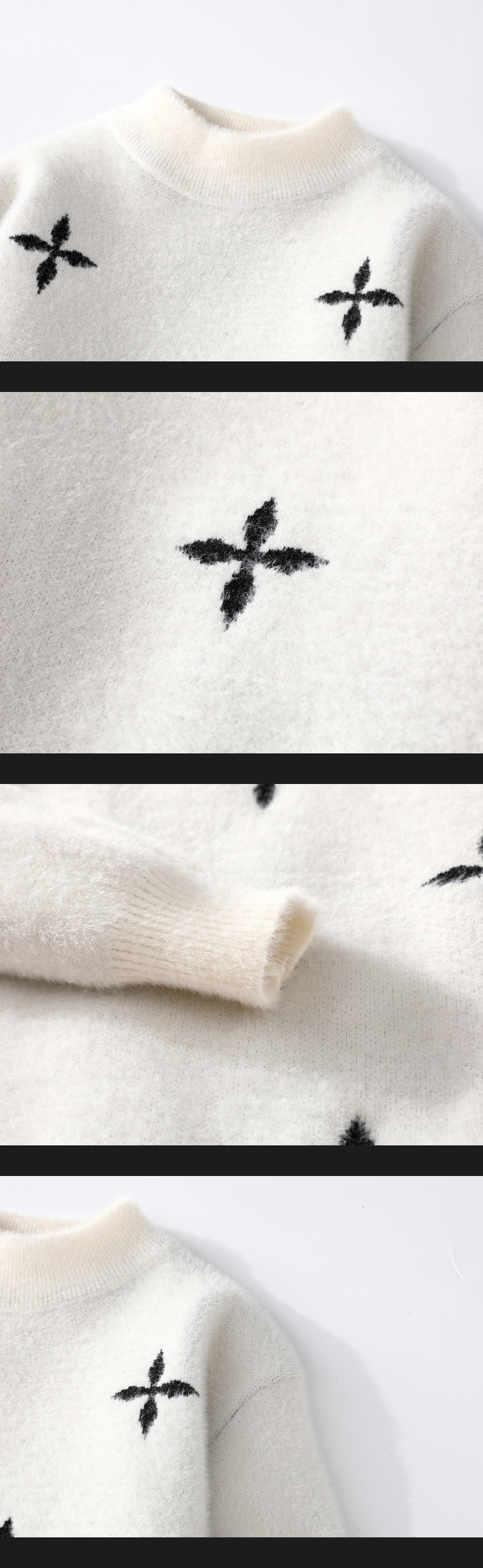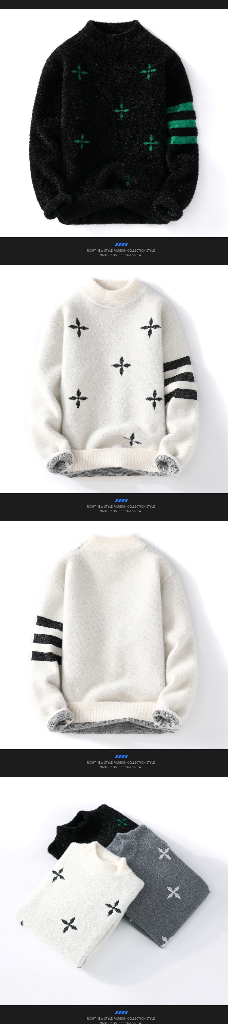 남자의 스웨터 가을과 겨울 두꺼운 밍크 벨벳 니트 스웨터 반 터틀넥 패션 인쇄 캐주얼 느슨한 따뜻한 스웨터스토어 가기