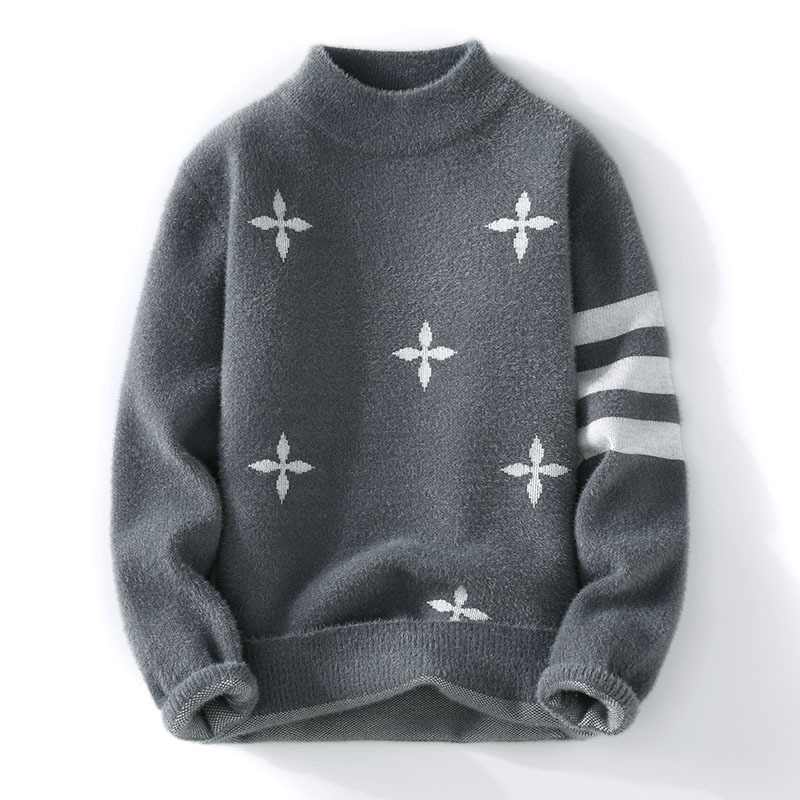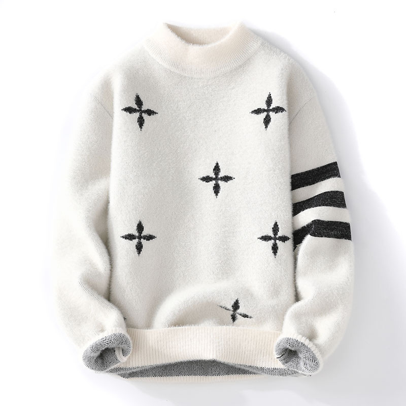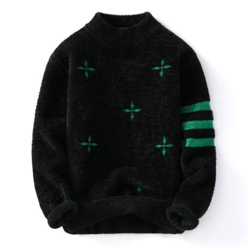 남자의 스웨터 가을과 겨울 두꺼운 밍크 벨벳 니트 스웨터 반 터틀넥 패션 인쇄 캐주얼 느슨한 따뜻한 스웨터