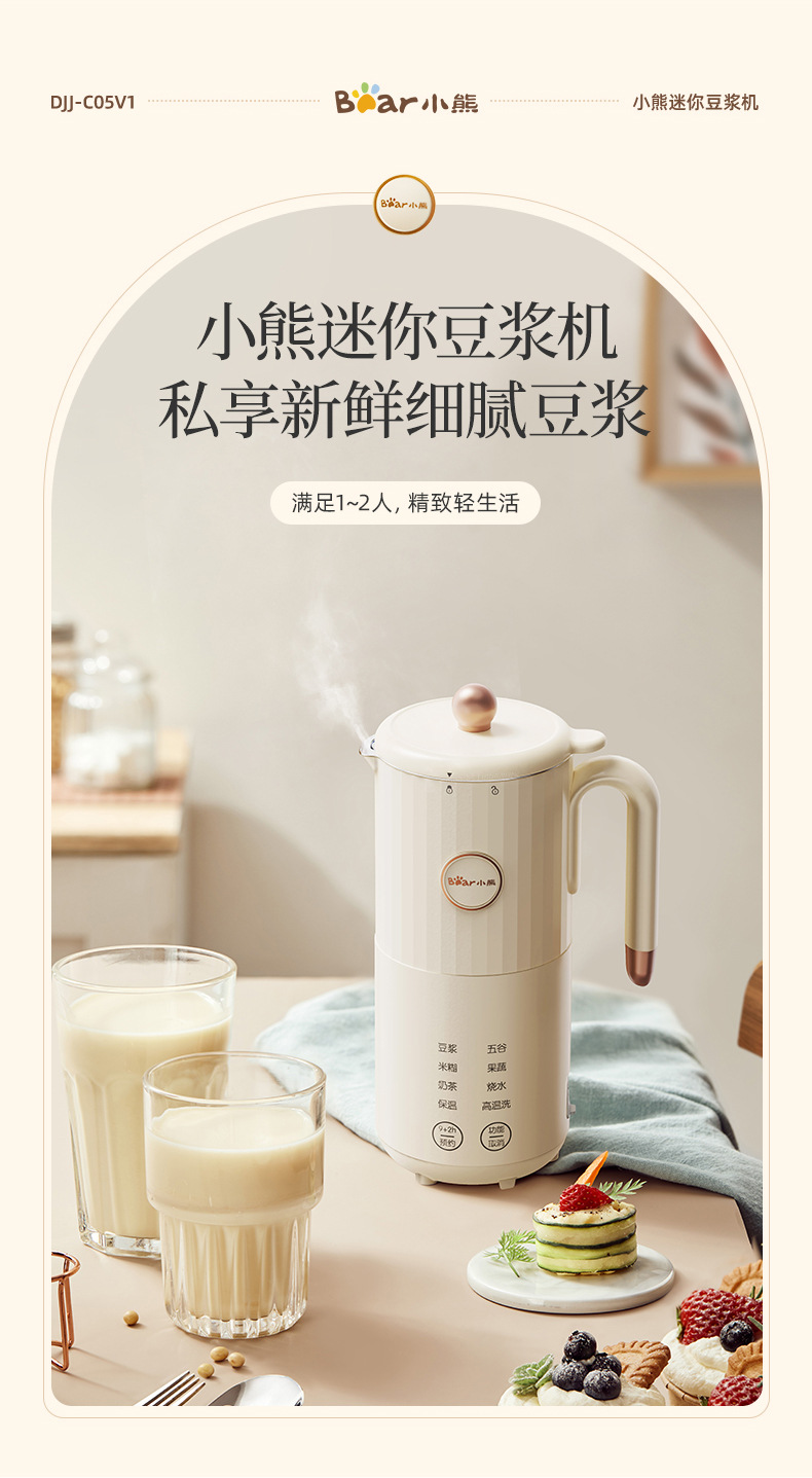 리틀 베어 미니 두유 기계 홈 1-2 인용 완전 자동 다기능 비 비등 비 여과 작은 새 벽 깨기 기계