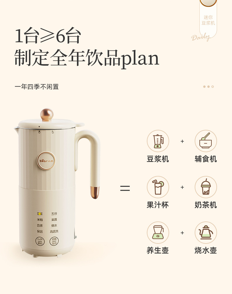 리틀 베어 미니 두유 기계 홈 1-2 인용 완전 자동 다기능 비 비등 비 여과 작은 새 벽 깨기 기계스토어 가기