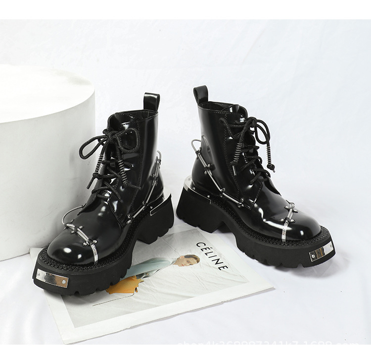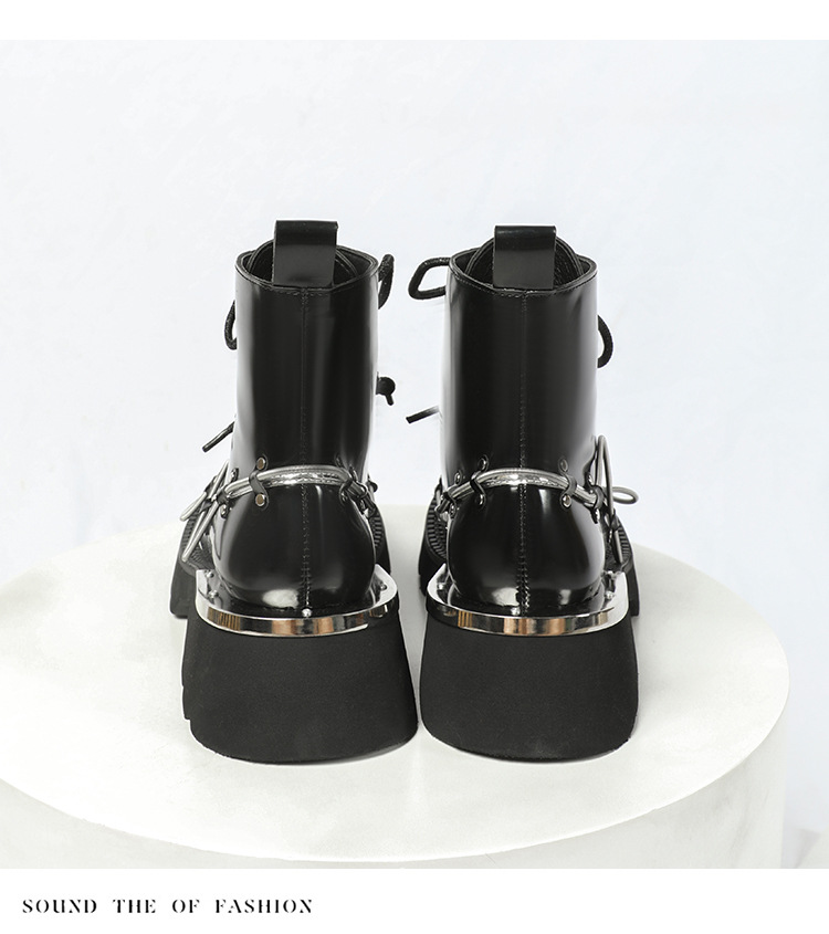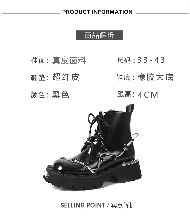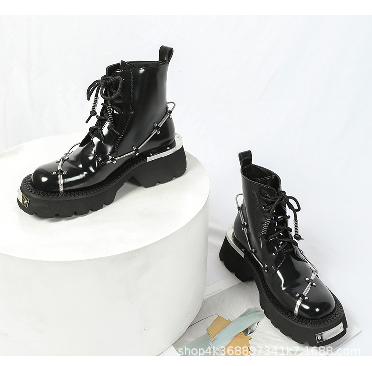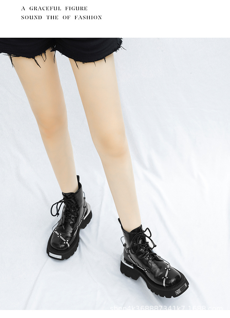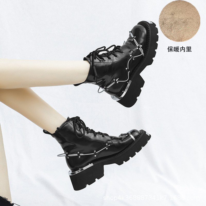 오토바이 금속 트림 기모 플랫폼 마틴 부츠 여자의 정품 가죽 크로스 스트랩 발목 부츠 작은 높이 부츠스토어 가기