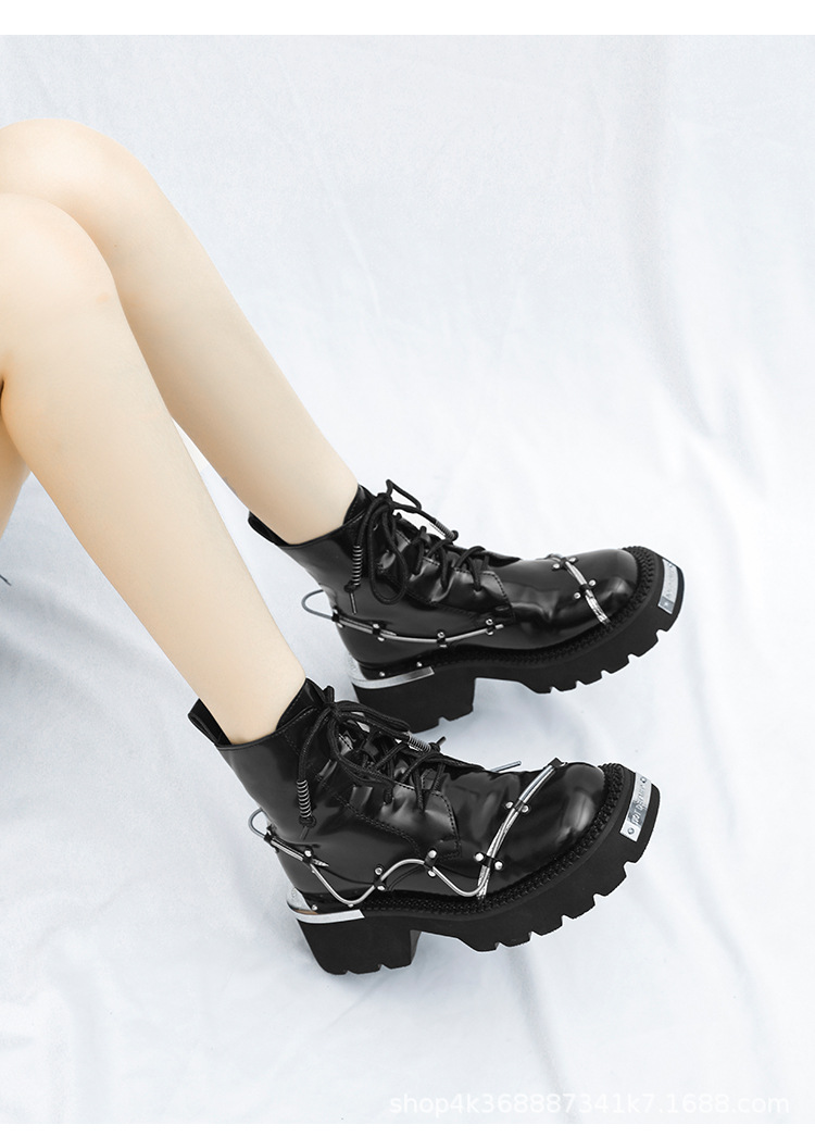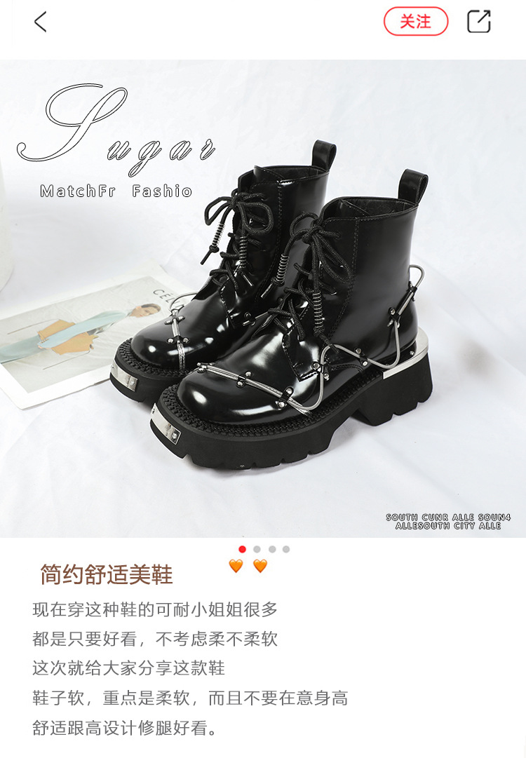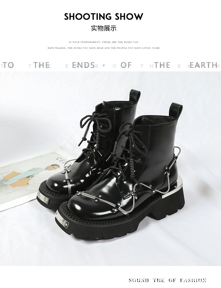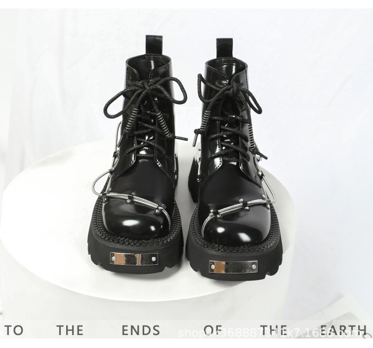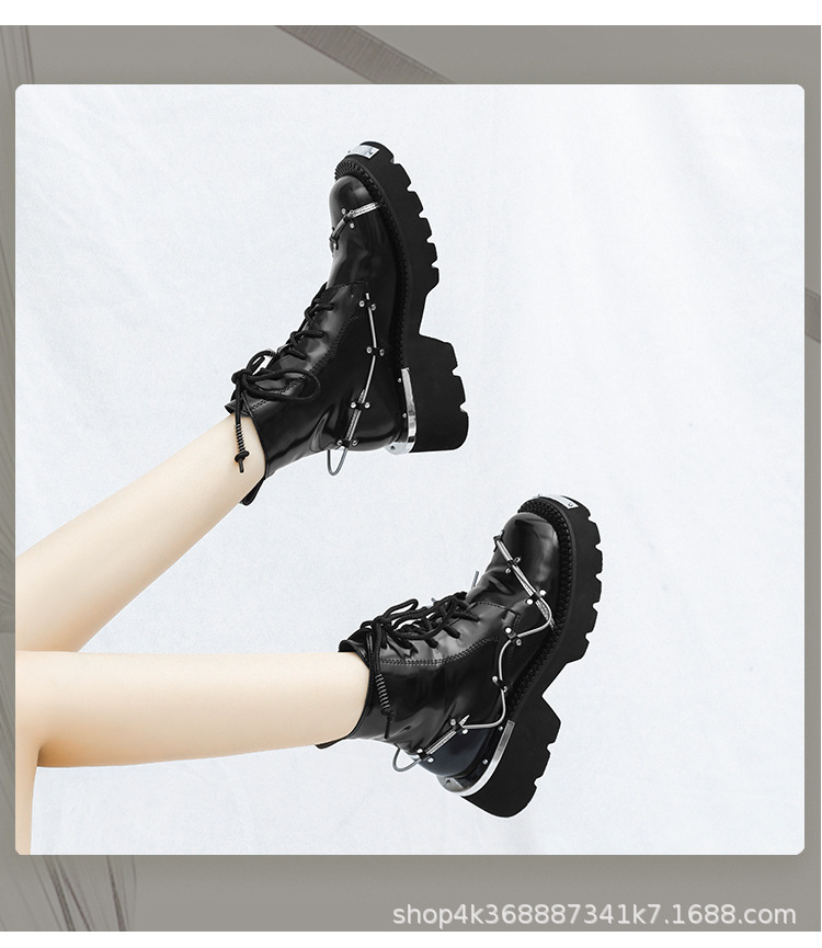 오토바이 금속 트림 기모 플랫폼 마틴 부츠 여자의 정품 가죽 크로스 스트랩 발목 부츠 작은 높이 부츠스토어 가기