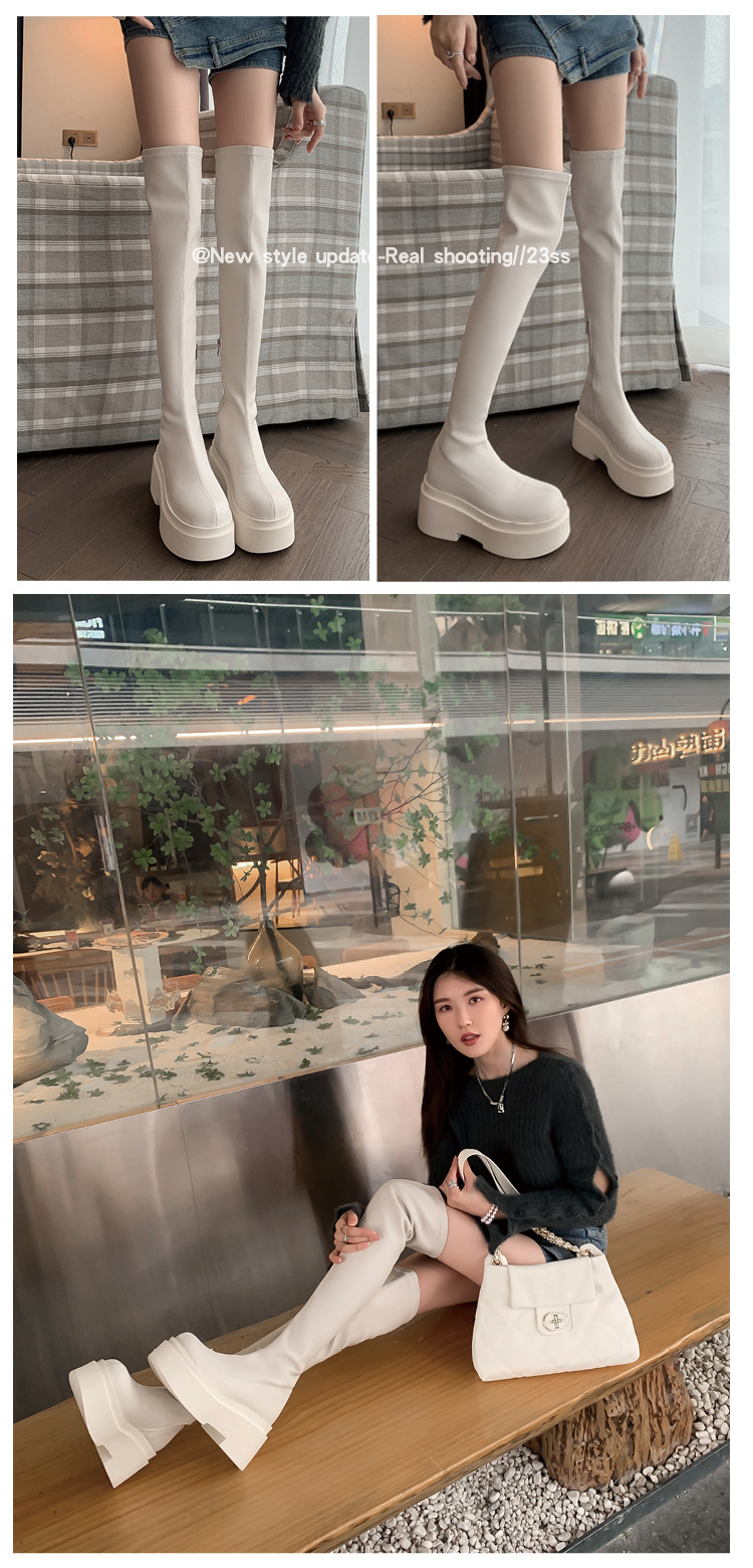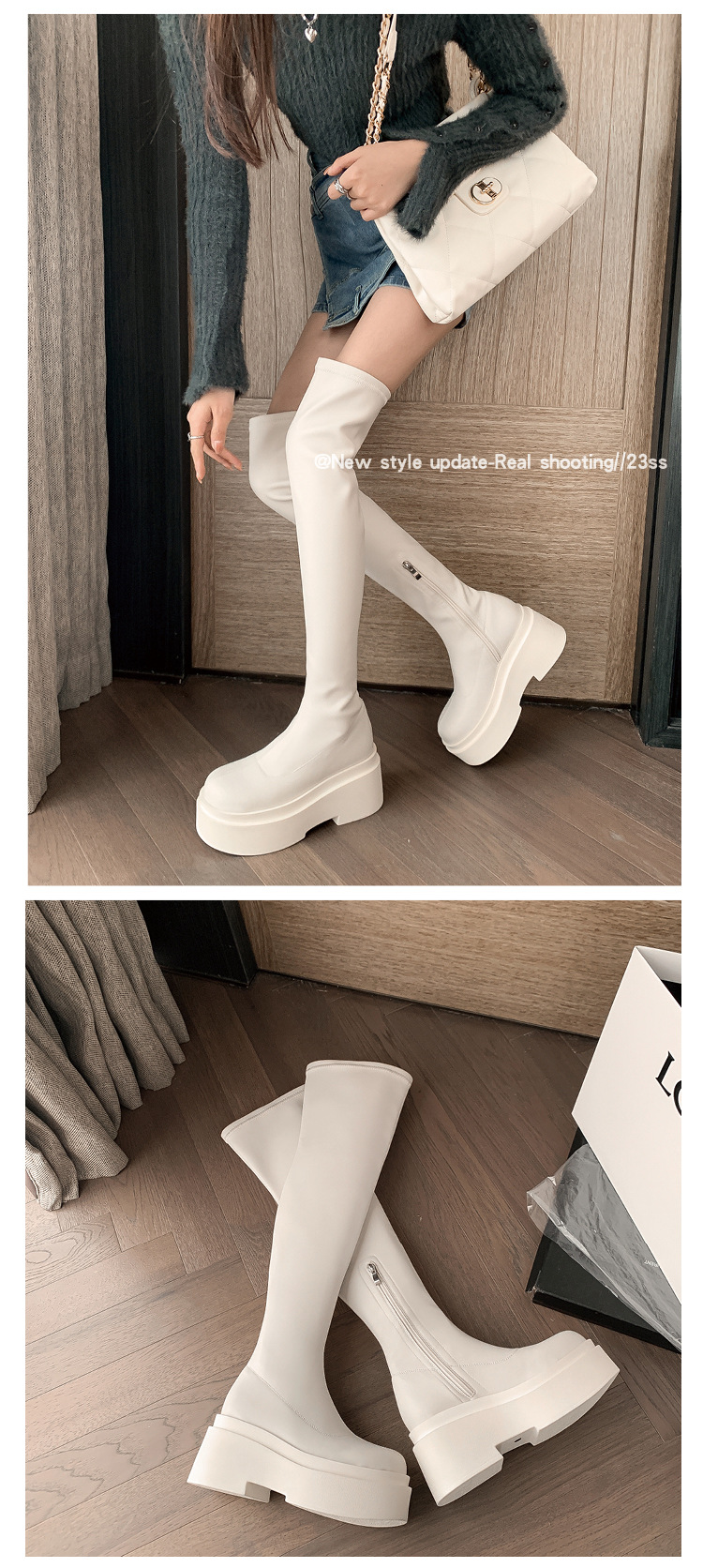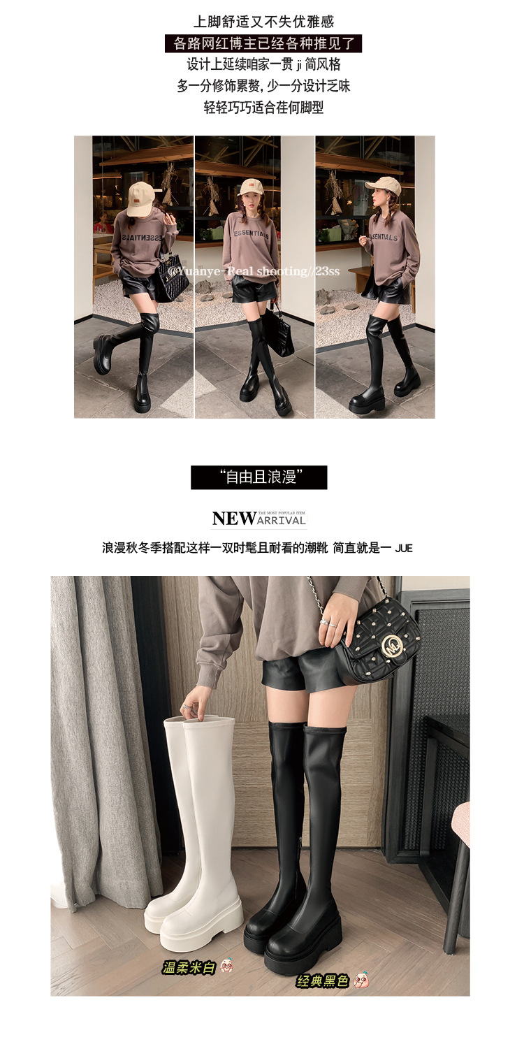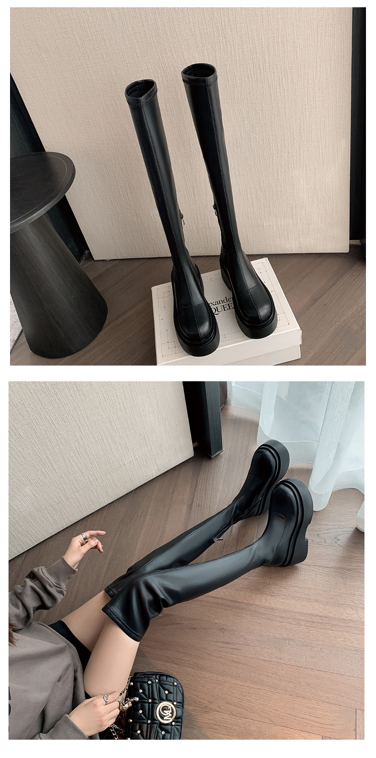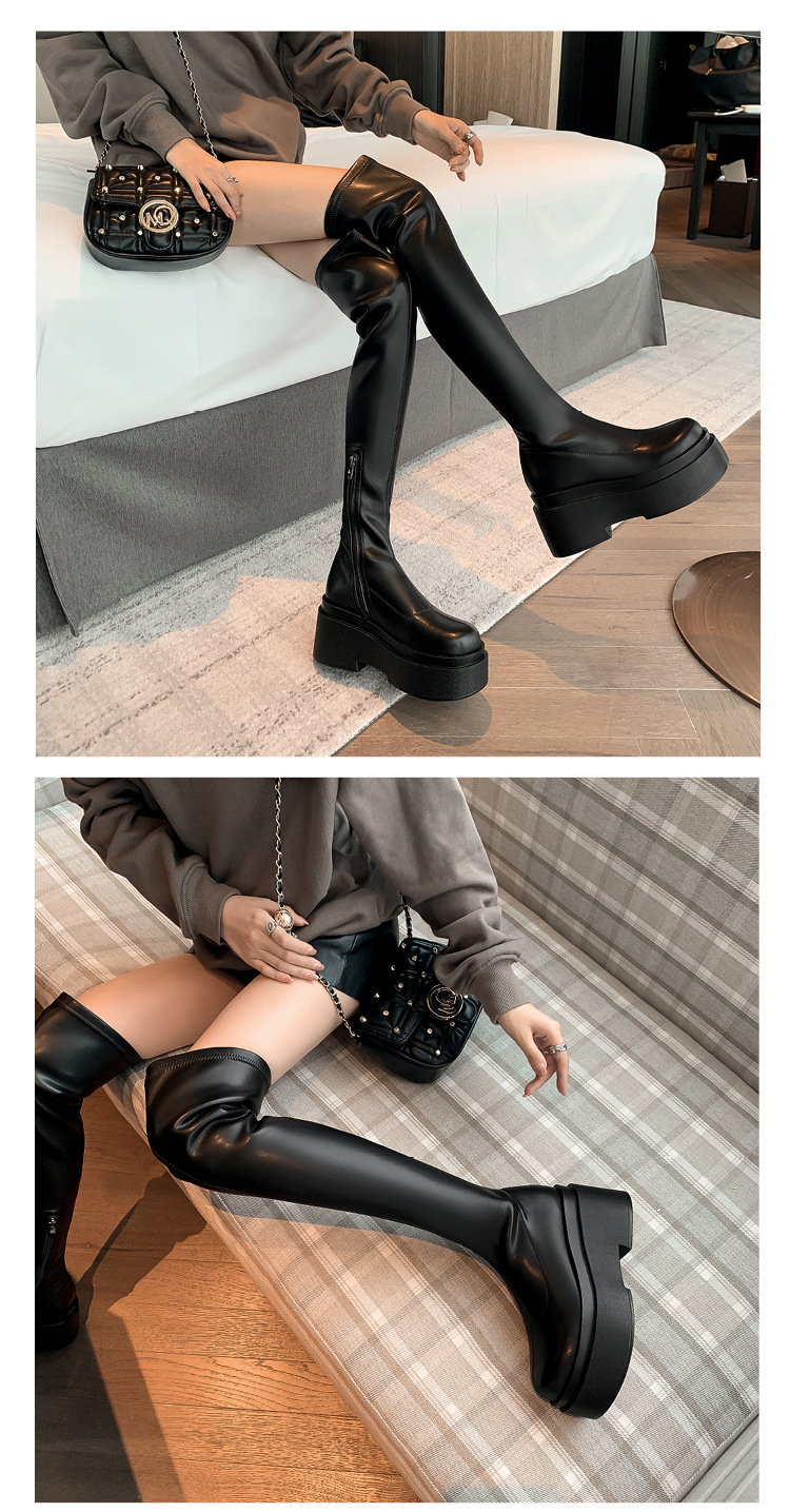 부츠 여성용 하이 부츠 가을과 겨울 얇은 다리 스트레치 부츠 대형 배럴 두꺼운 바닥 증가 플랫폼 라이더 나이트 오버 더 니 부츠 트렌디스토어 가기