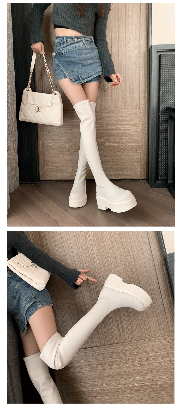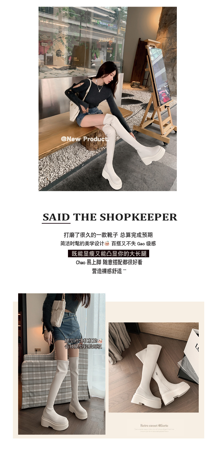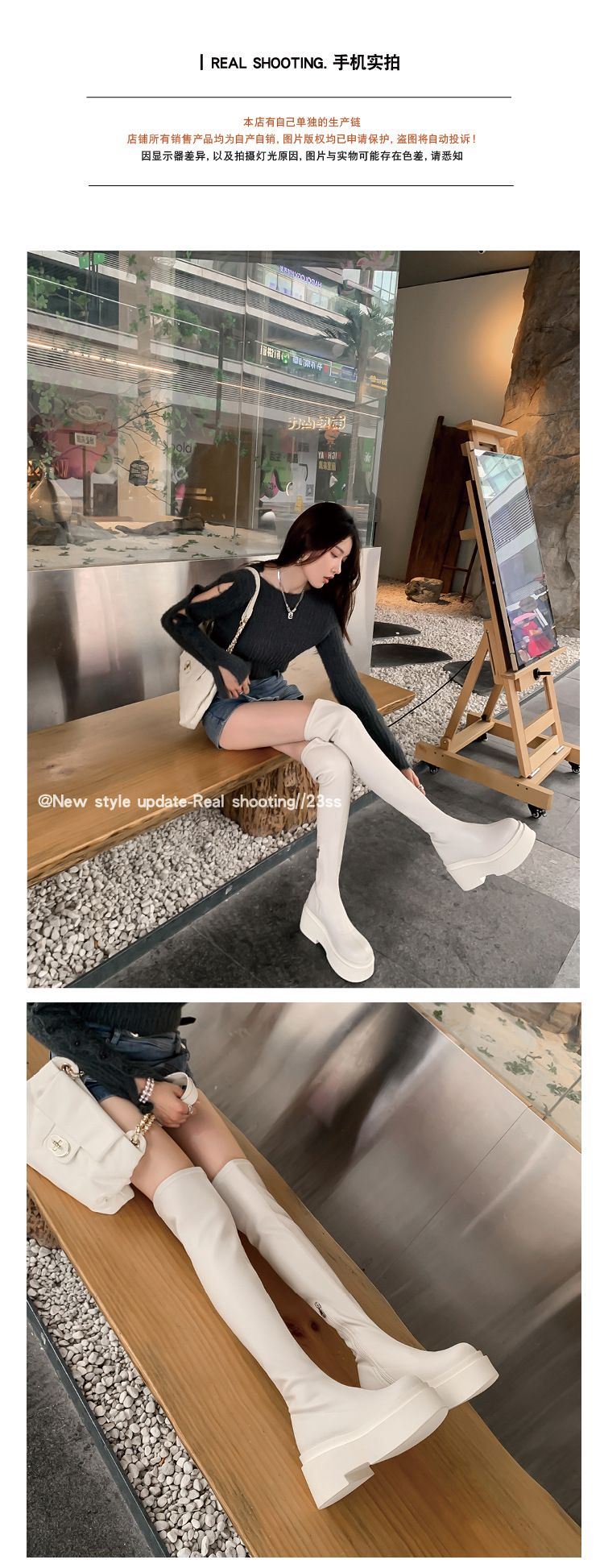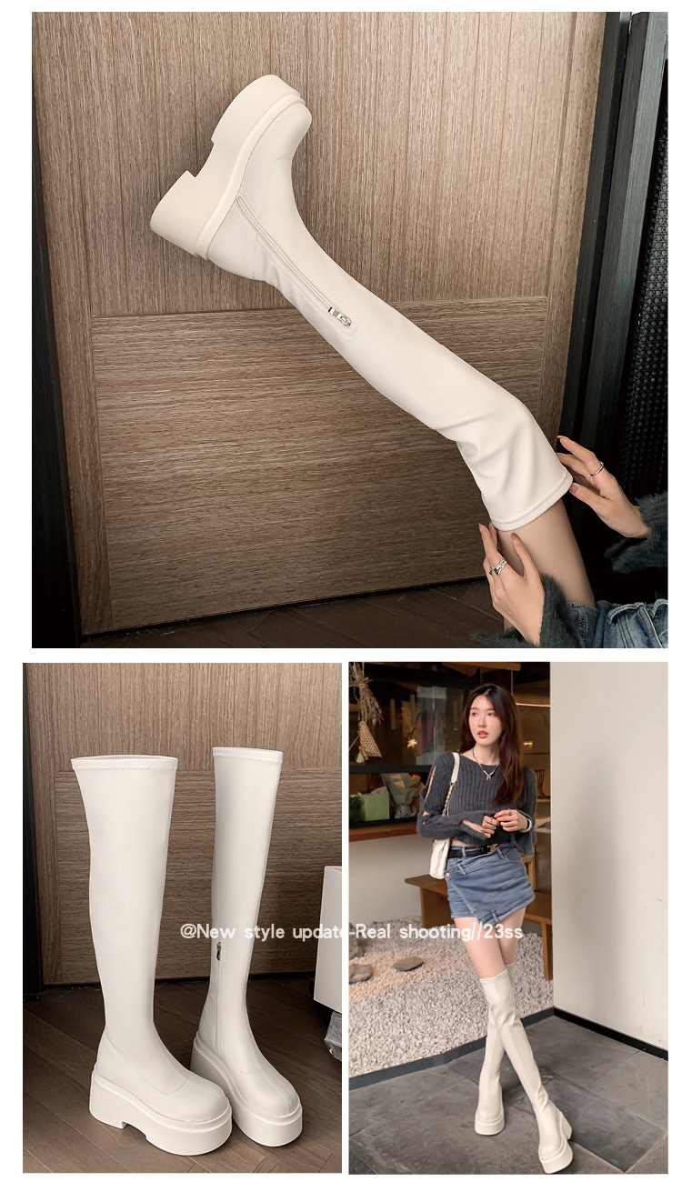 부츠 여성용 하이 부츠 가을과 겨울 얇은 다리 스트레치 부츠 대형 배럴 두꺼운 바닥 증가 플랫폼 라이더 나이트 오버 더 니 부츠 트렌디스토어 가기