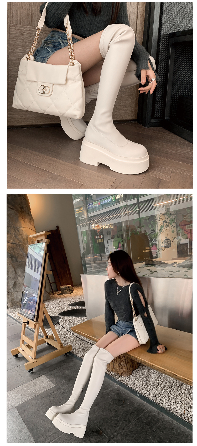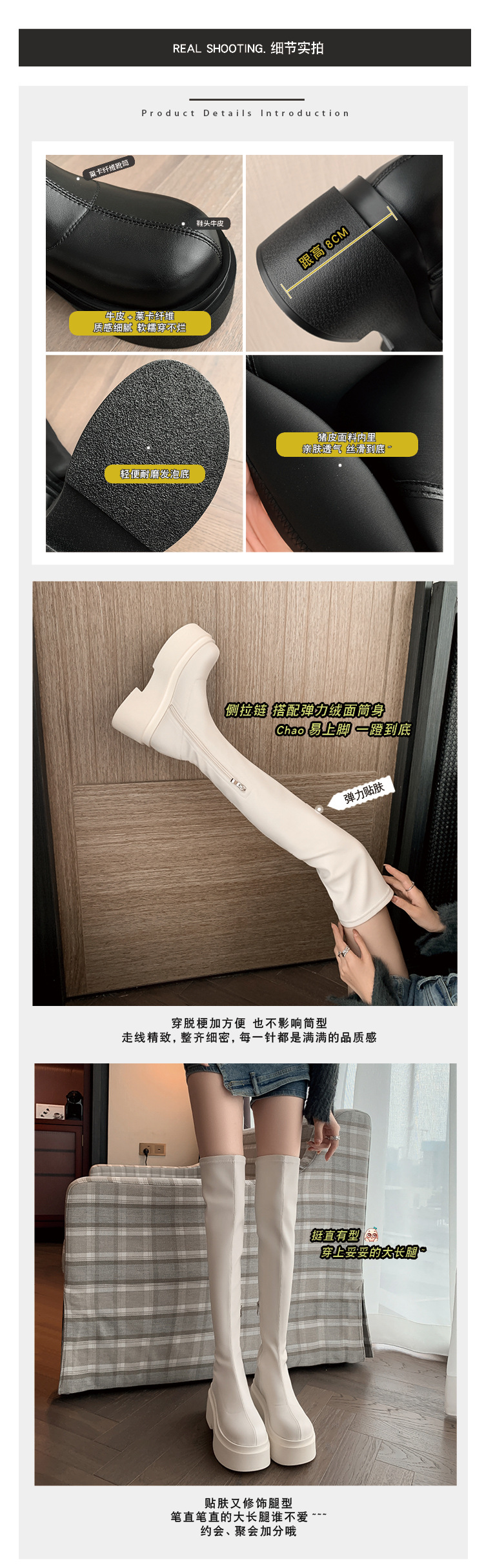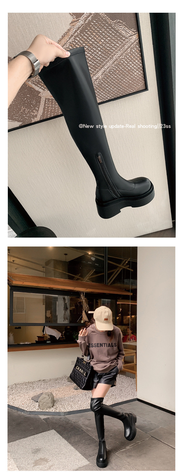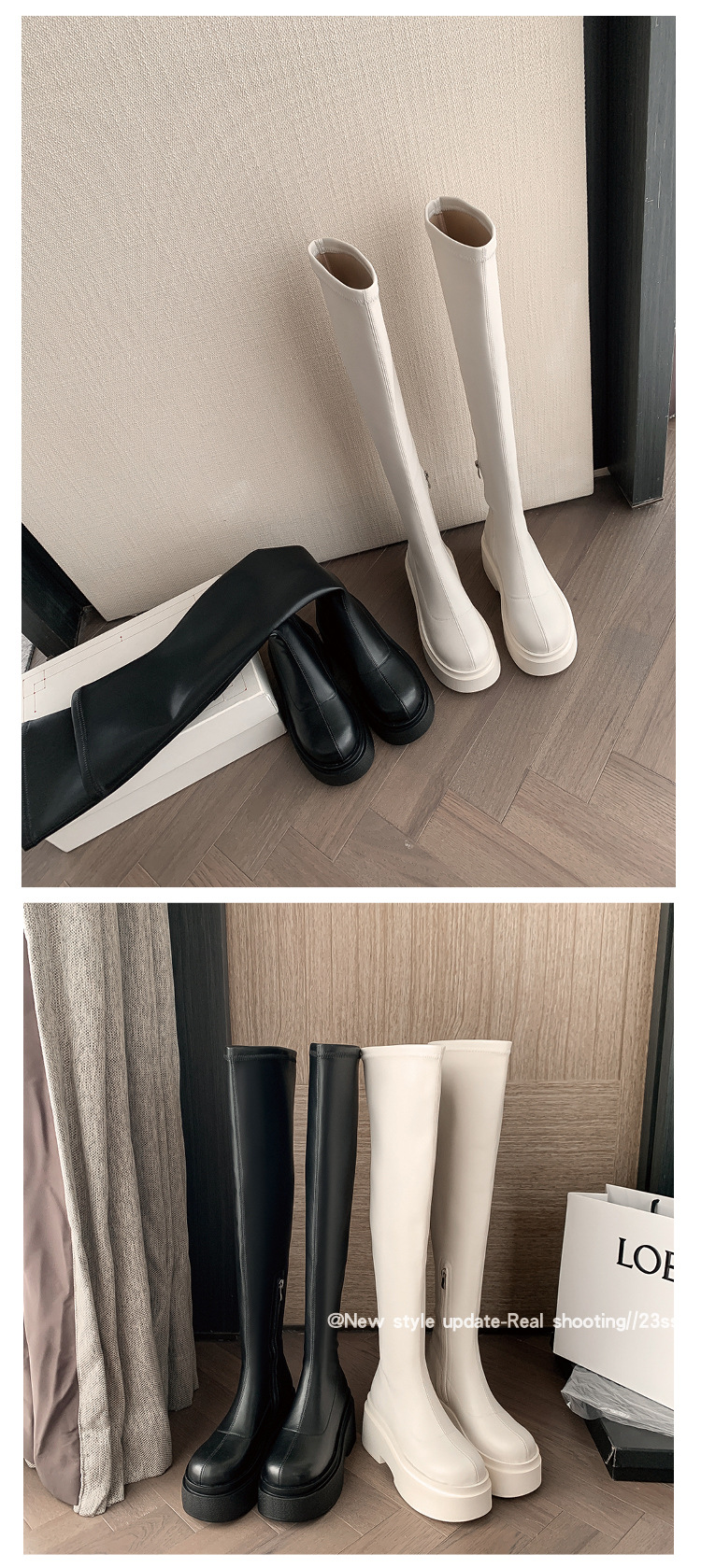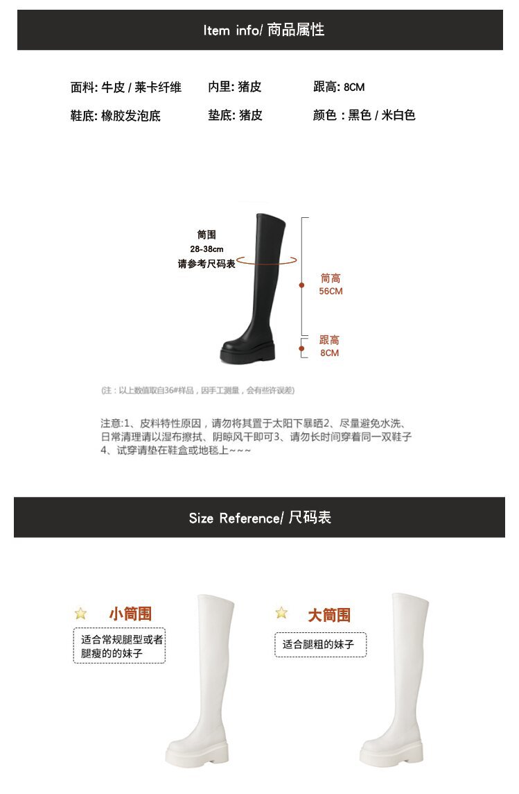 부츠 여성용 하이 부츠 가을과 겨울 얇은 다리 스트레치 부츠 대형 배럴 두꺼운 바닥 증가 플랫폼 라이더 나이트 오버 더 니 부츠 트렌디스토어 가기