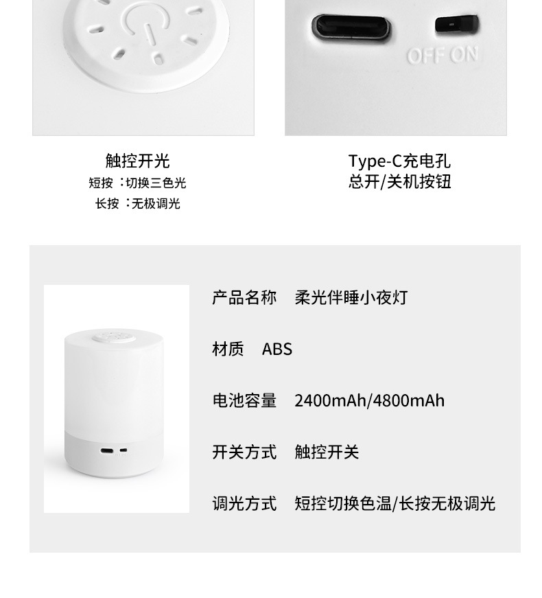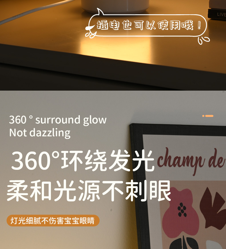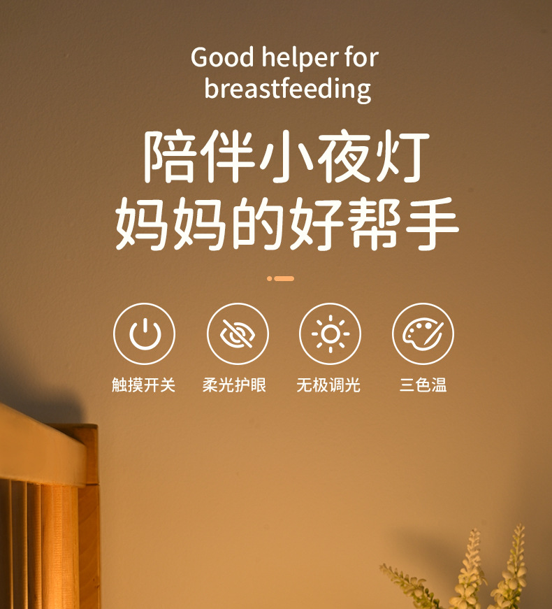 충전 터치 야간 조명 침실 따뜻한 빛 분위기 조명 눈 보호 부드러운 빛 led 침대 옆 빛 수면 조명