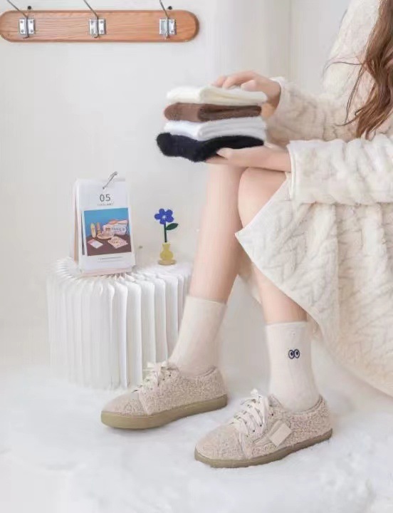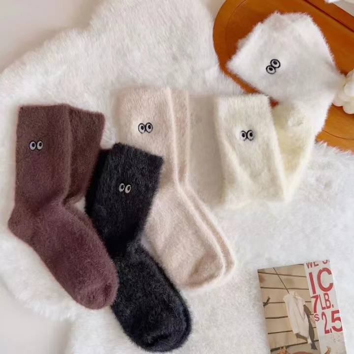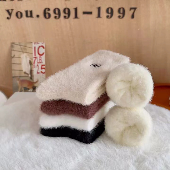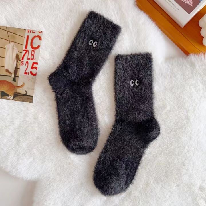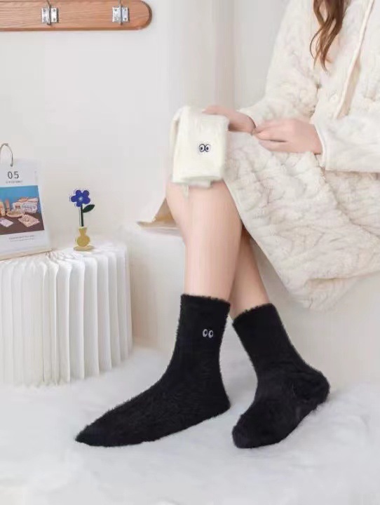흰색 양말 여성의 가을과 겨울 따뜻한 밍크 벨벳 수면 홈 양말 만화 재미있는 겨울 여성 튜브 양말 가정스토어 가기