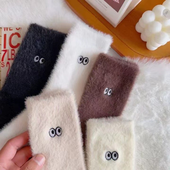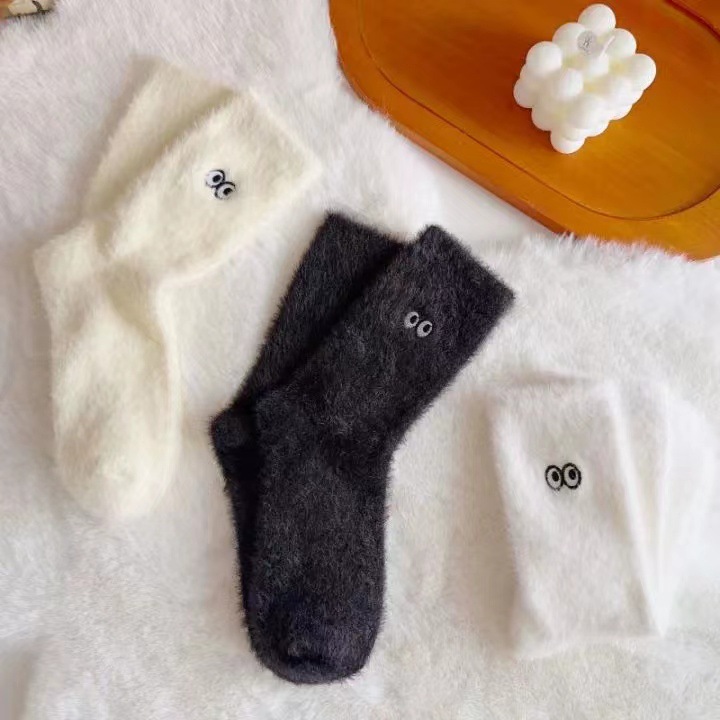 흰색 양말 여성의 가을과 겨울 따뜻한 밍크 벨벳 수면 홈 양말 만화 재미있는 겨울 여성 튜브 양말 가정