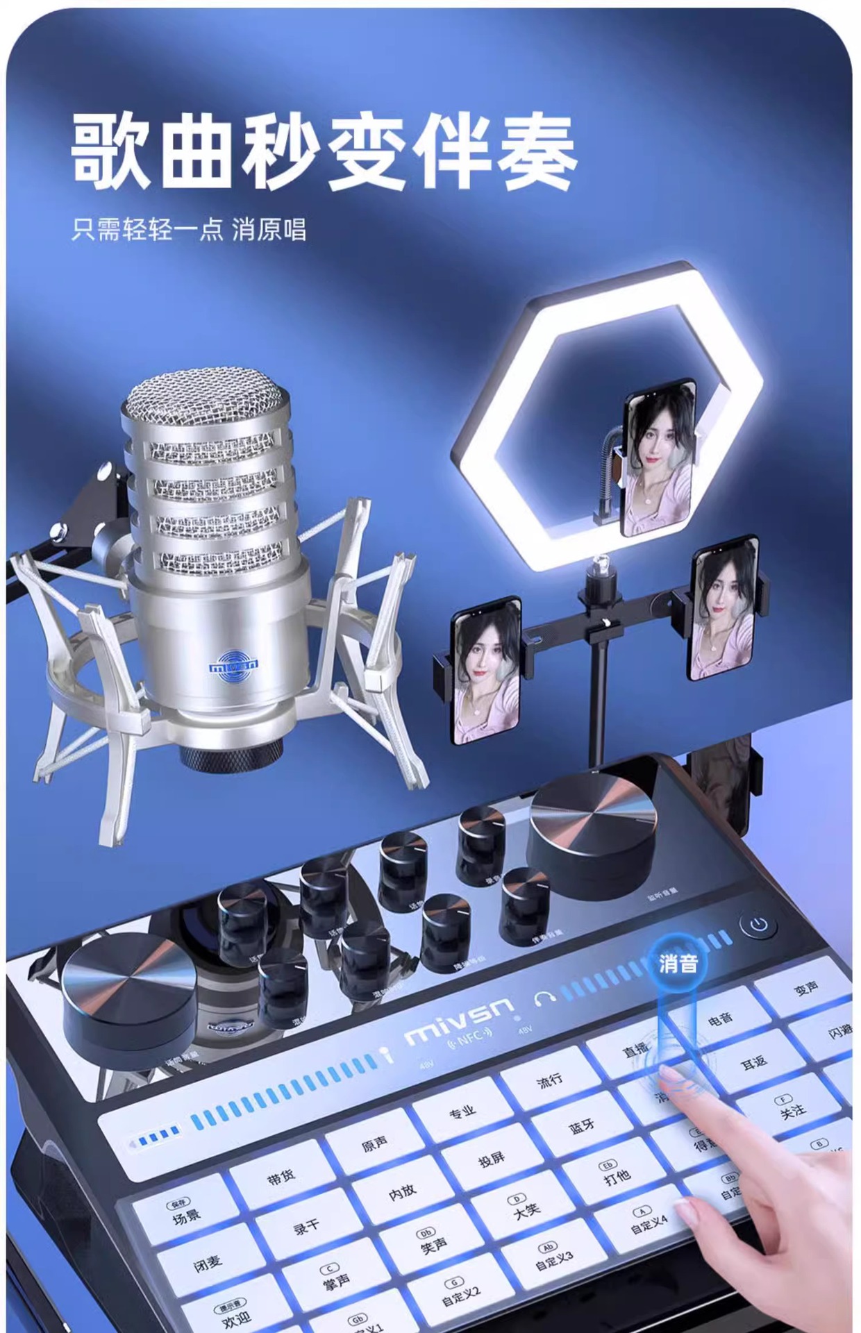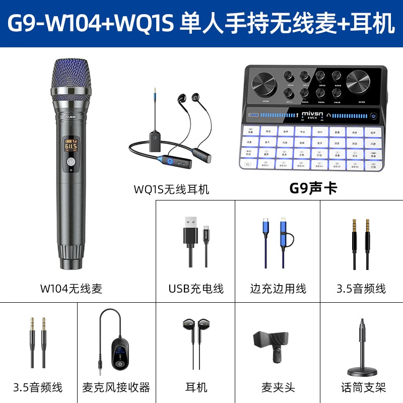 Meisheng G9 사운드 카드 라이브 방송 장비 전문 노래 마이크 휴대 전화 컴퓨터 가라오케 음성 빠른 손의 전체 세트