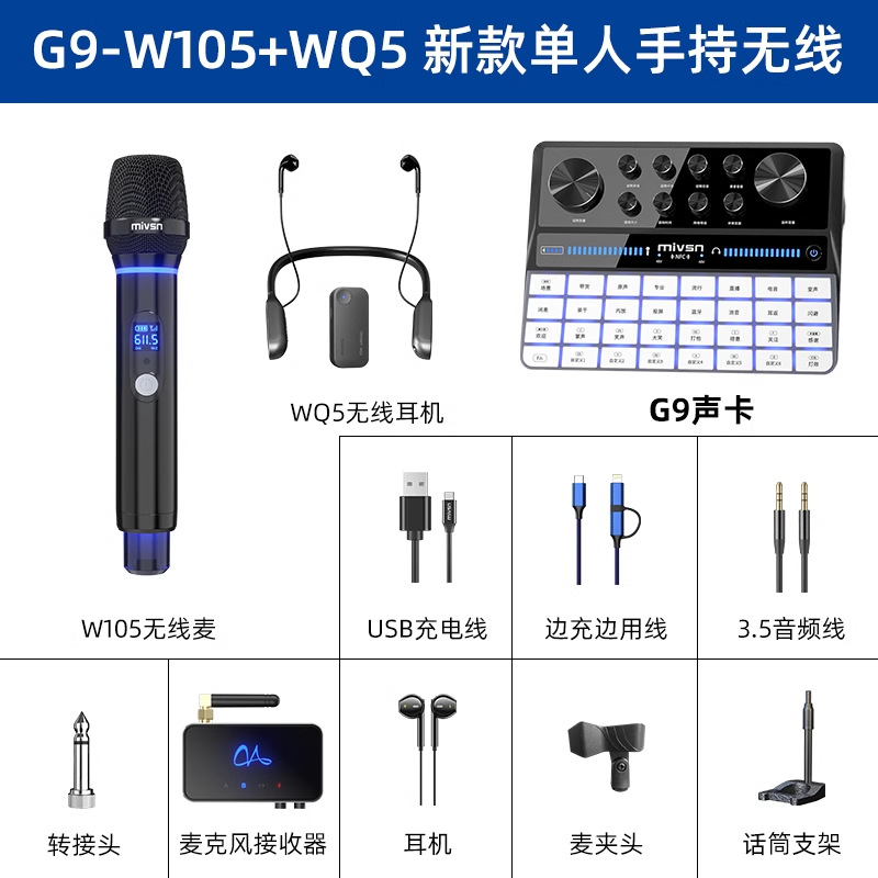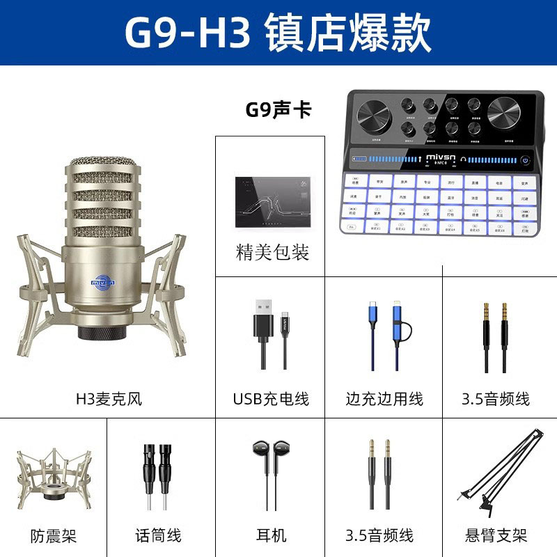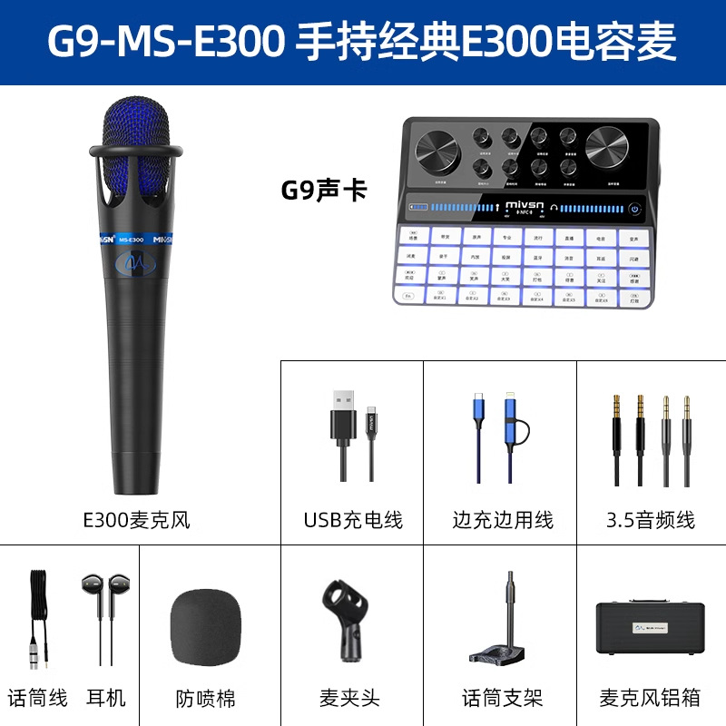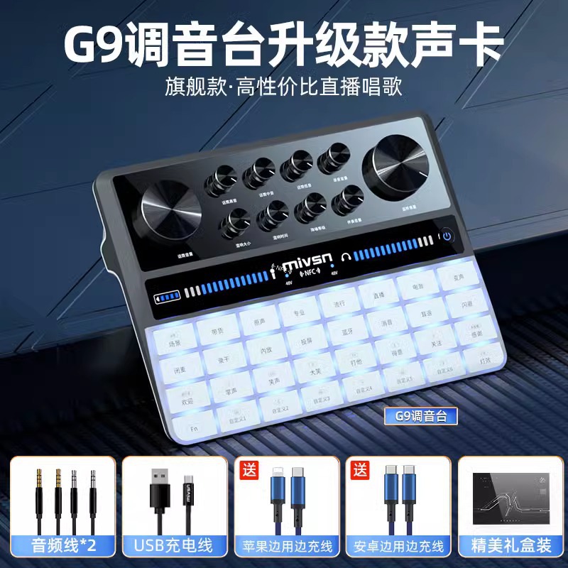 Meisheng G9 사운드 카드 라이브 방송 장비 전문 노래 마이크 휴대 전화 컴퓨터 가라오케 음성 빠른 손의 전체 세트스토어 가기