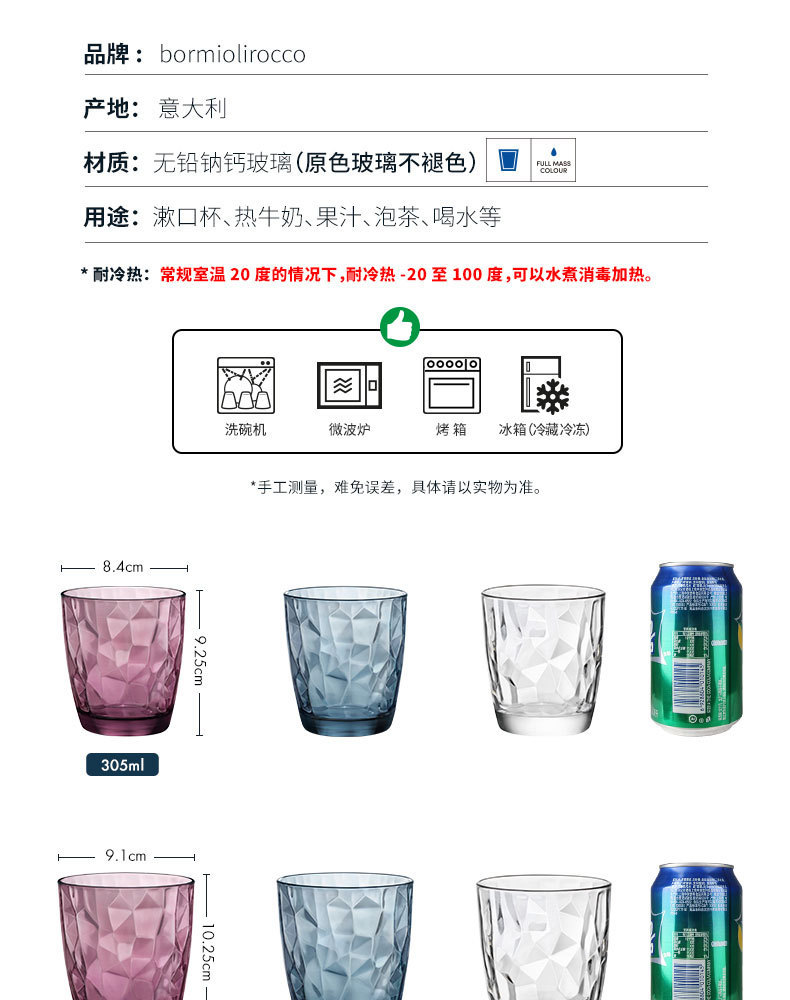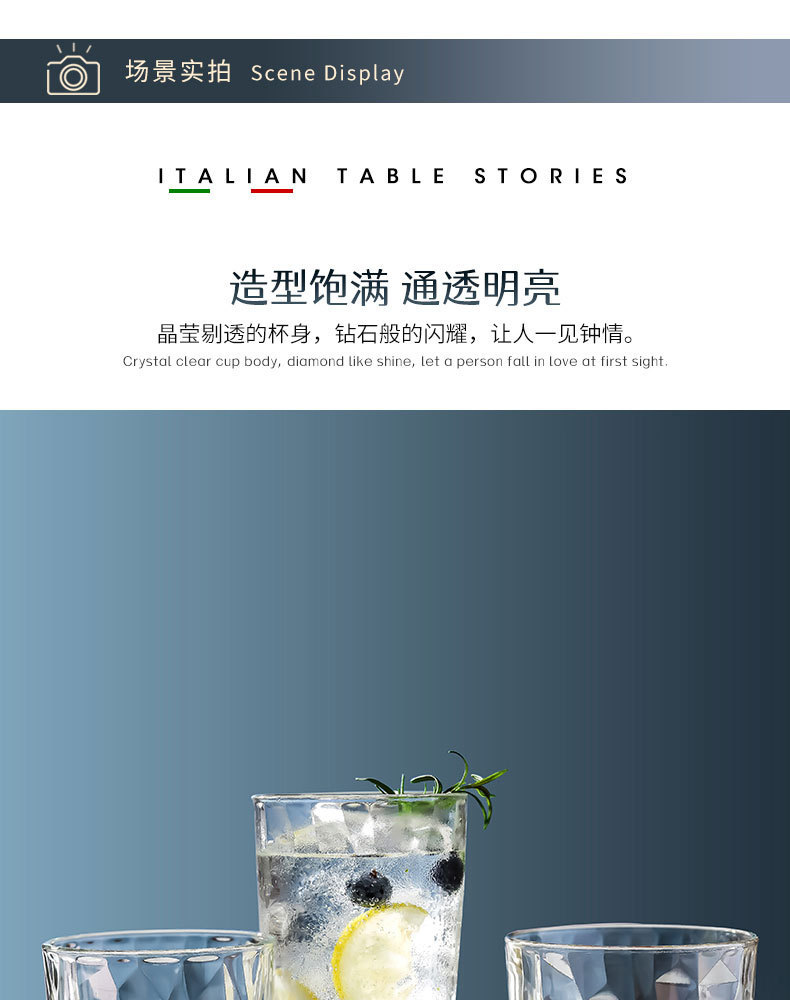Bormioli 로코 수입 다이아몬드 유리 레스토랑 키 큰 물 컵 방 구강 세척제 유리 위스키 잔
