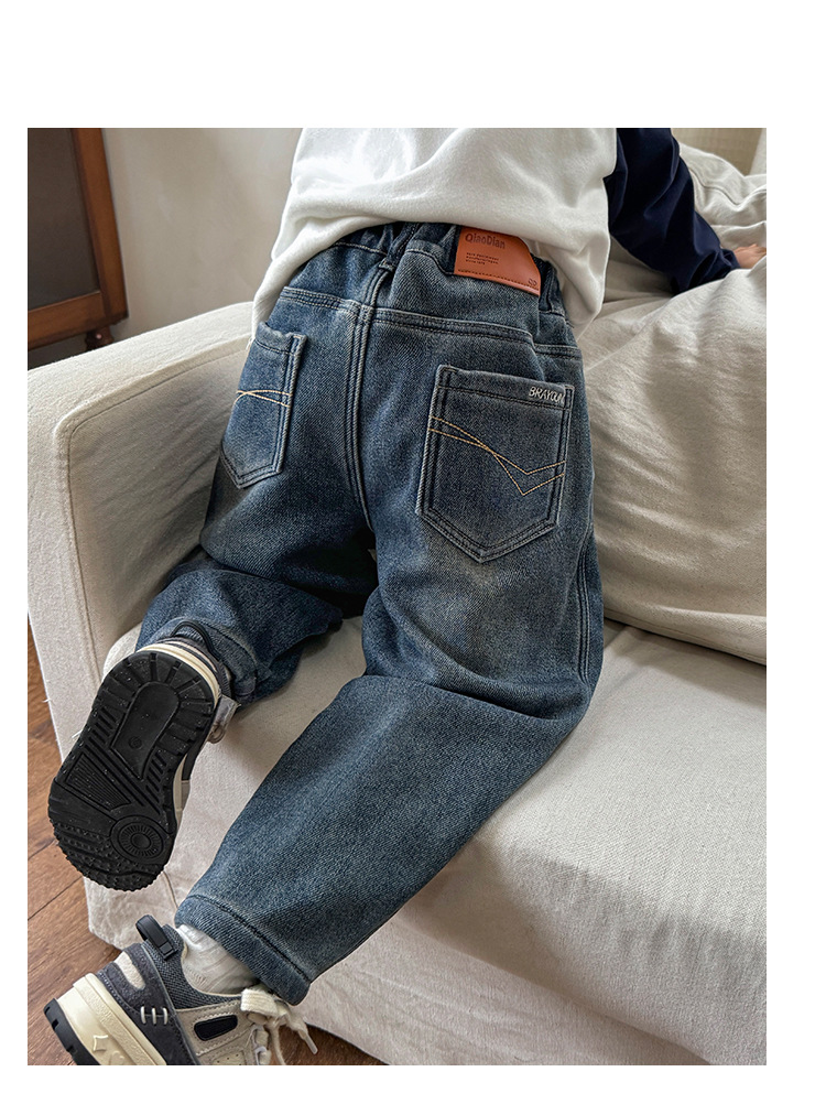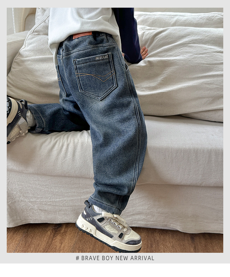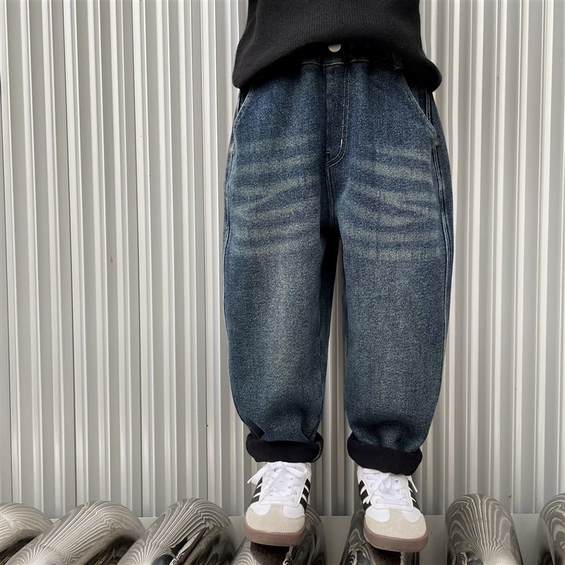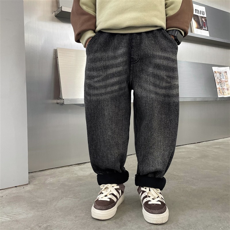 Haima의 2024 년 겨울 새 기모 두꺼운 소년 청바지 어린이 겨울 바지 아동복 한국어 버전스토어 가기