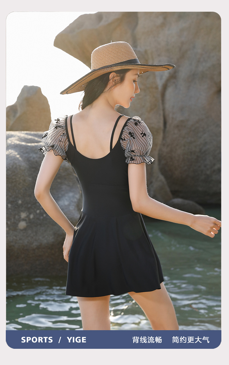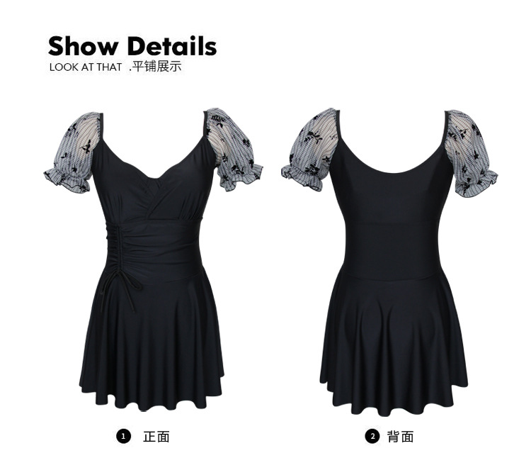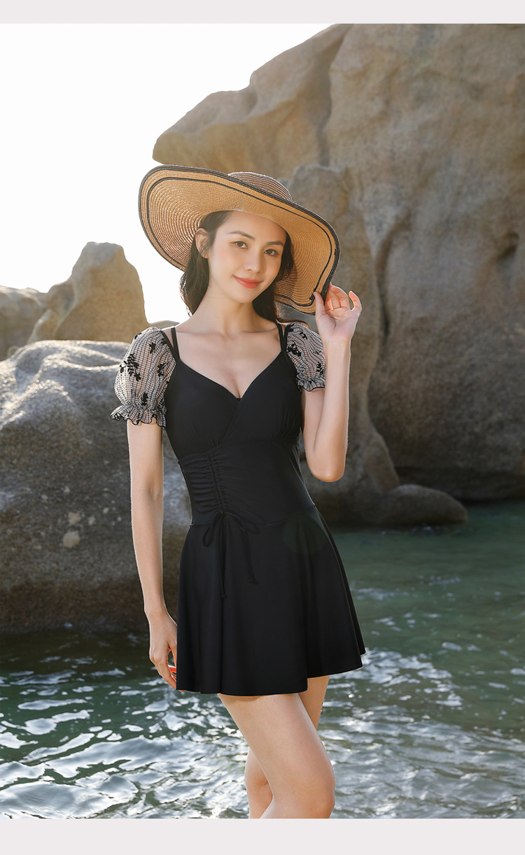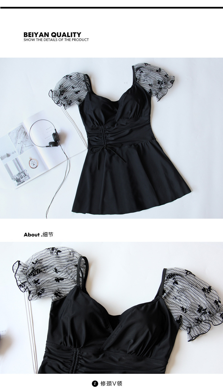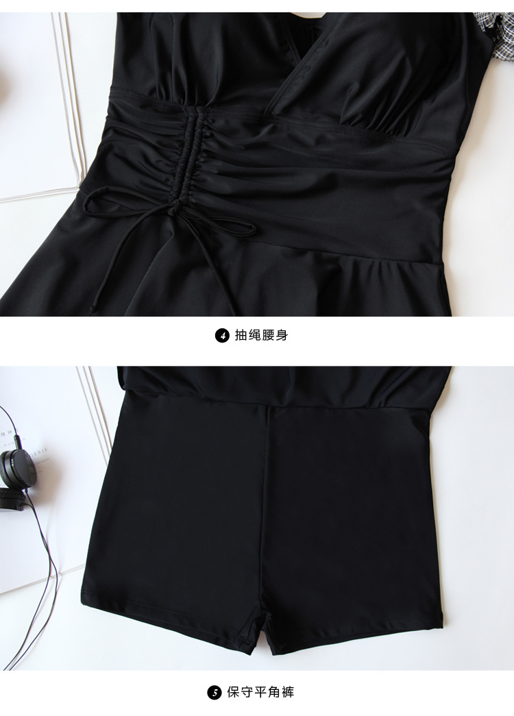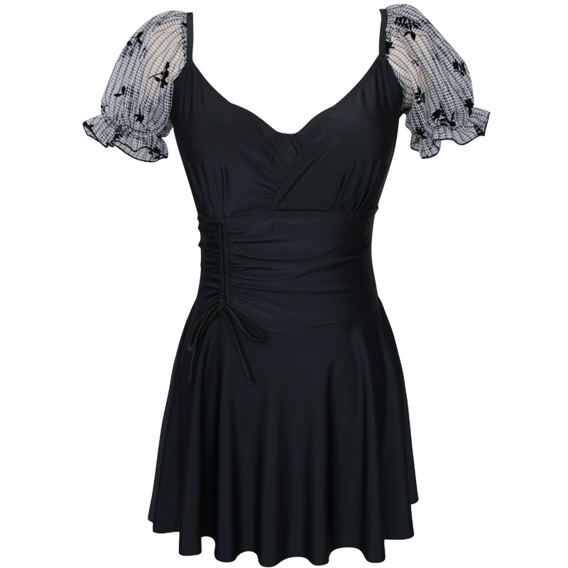 수영복 여성용 새로운 반팔 플러스 사이즈 통통녀 온천 개더업 사이즈 가슴 원피스 스커트 섹시 슬림 배꼽 커버 수영복